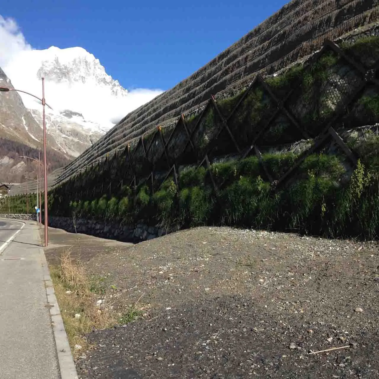 - Low environmental impact (normally, for the backfilling, it can be used the landslided material, except for the hydraulic works in which the material must be carefully selected and with proper dimension according to the design specifications);