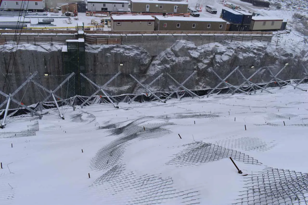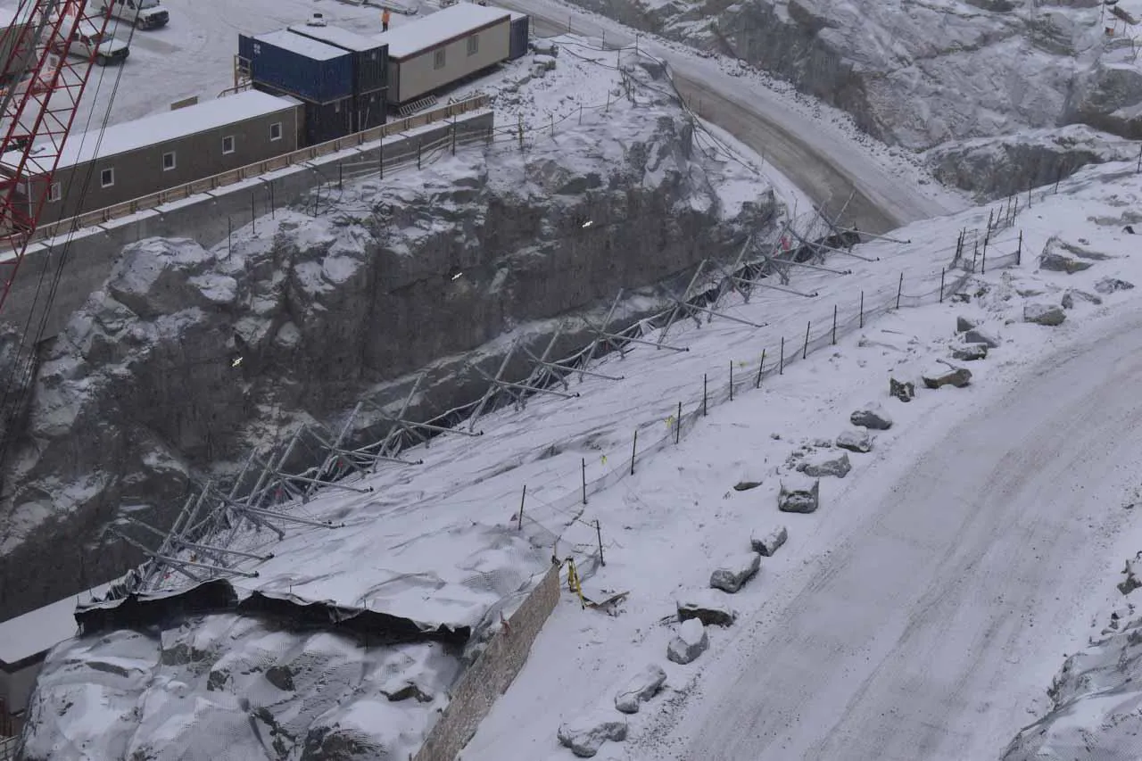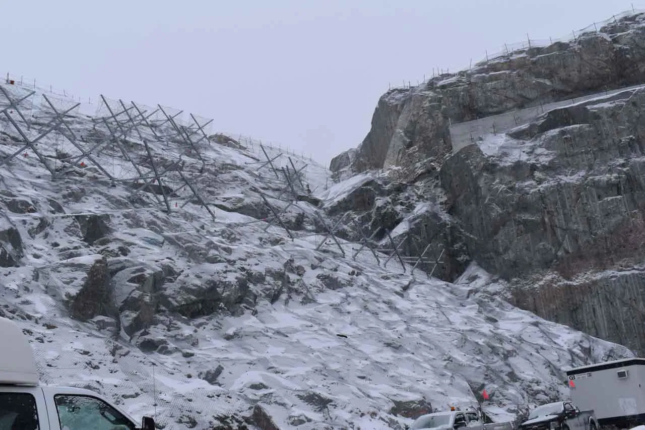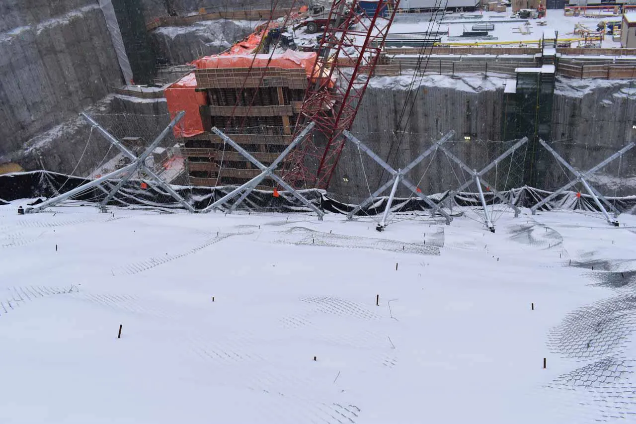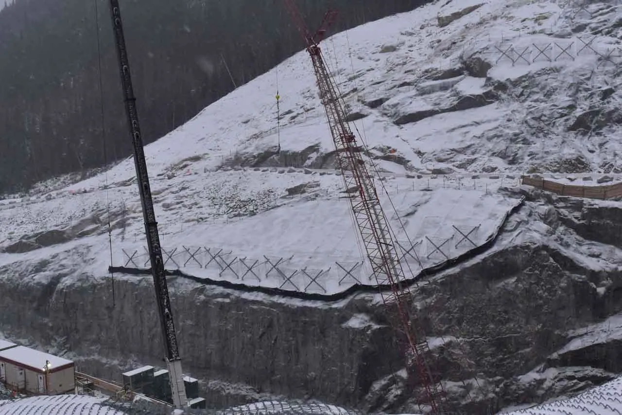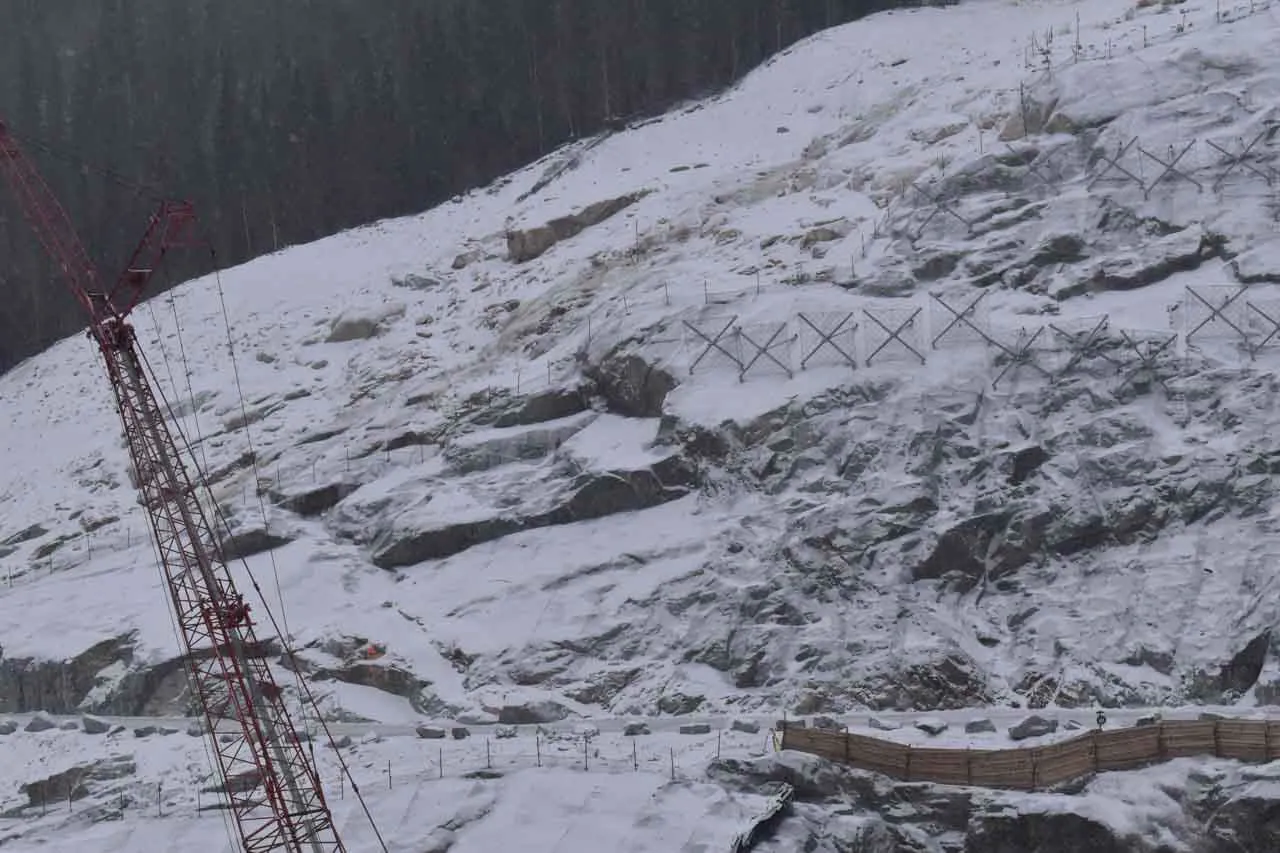 Downstream counterpull system, applied directly to the structure, whose purpose is to counteract the occurrence of flexural stresses in the stems caused by the presence of ice plates and snow on the bracing ropes positioned in the upper portion of the ErdoX Snow barrier; This part of the structure is a unique feature and was patented by Betonform to find a solution to a problem that caused devastating deformation over time in classic single-anchor barriers.
