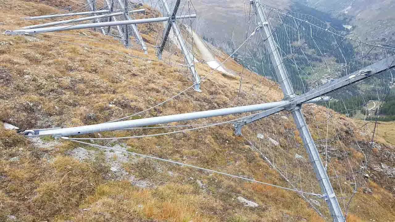 Rope panel with CVT (Italian Certificate of Technical Assessment) or CE certification in accordance with Regulation 305/2011 (former European Directive 89/106/EEC) and in accordance with the requirements of Ministerial Decree 14/01/2008 (Technical Standards for Construction). The rope panels are made of wire-core steel cables with nominal strenght not less than 1770 N/mm2 (UNI EN 12385-2), diameter of 8 mm, galvanized with eutectic Zinc/Aluminum alloy, Class A,stranded in a rhomboidal meshes of nominal size not exceeding 300x300 mm; - Double twist mesh with hexagonal opening, woven with steel wire, protected with eutectic alloy Zn-Al5% UNI EN 10244-2 (Table 2 - Class A). The double twist mesh panels are edged laterally in order to simplify the assembly operations. - bracing cables made of steel-core wire ropes with a grade of not less than 1770 N/mm2 (UNI EN 12385-2), diameter 16 mm (UNI EN 12385-4), galvanized with eutectic zinc alloy, Class A. All cables used have thimbles and sleeves, mounted in the production plant; this technical solution makes it possible to avoid the use of clamps that could be placed and not properly tightened, and ensures that the strength characteristics of the coupling are maintained over time as well as making the assembly steps of the system easier.