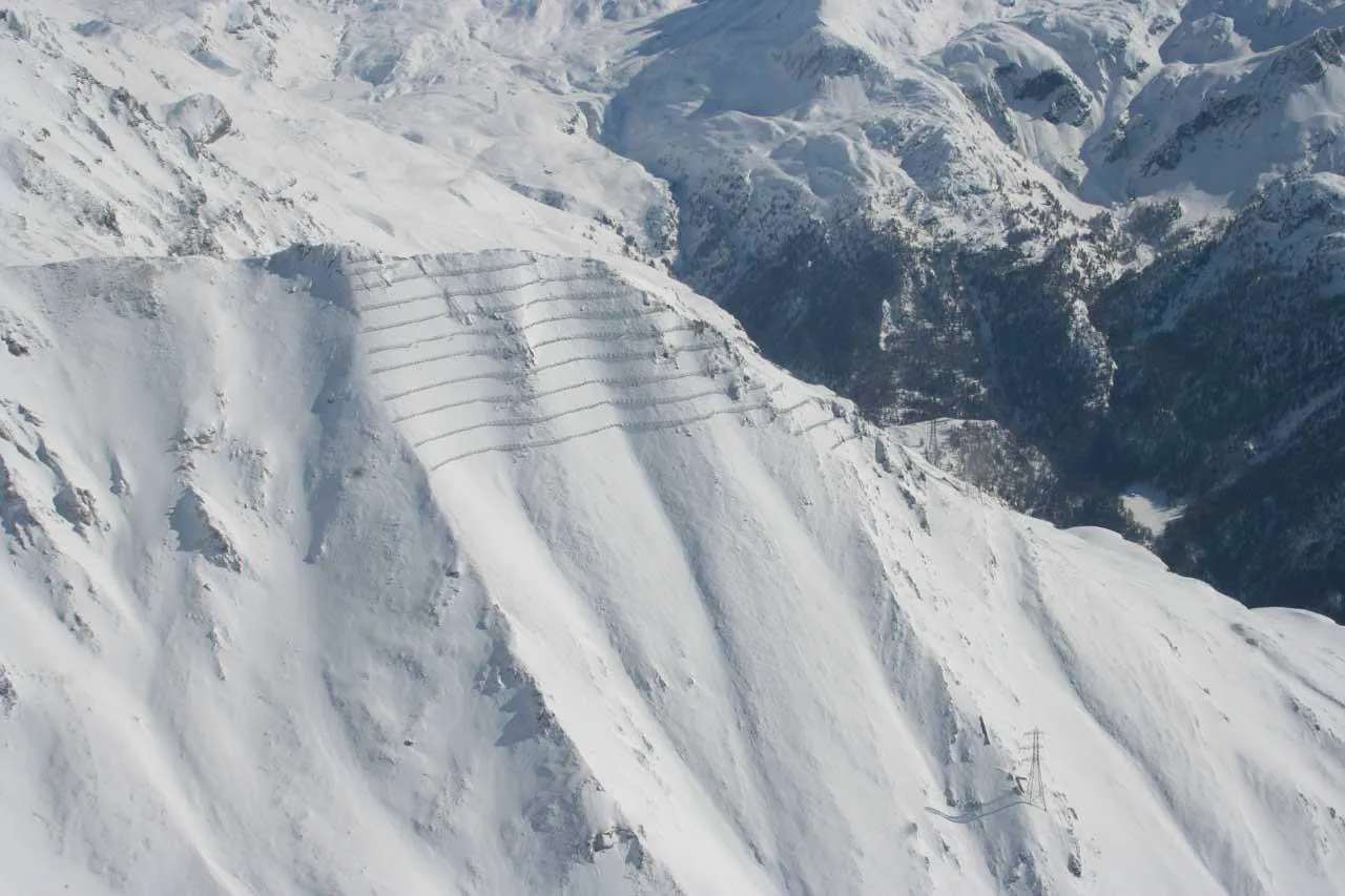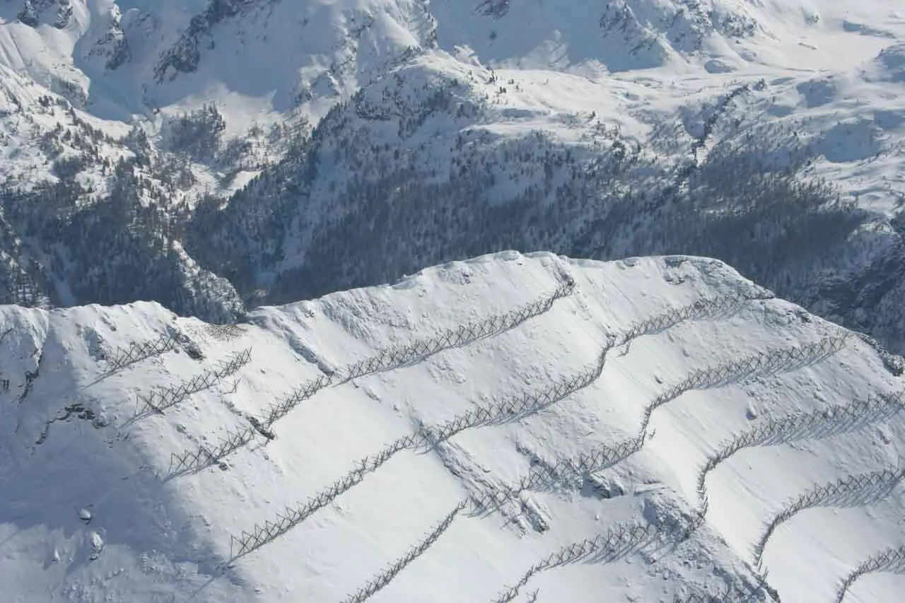 Le strutture ErdoX Neve (Dk300-Dk350-Dk400-Dk450 cm ca.) are the quickest and safest solution for active consolidation of avalanches. Active defense works are those that are carried out in the avalanche formation zone, or better , in the avalanche release zone.