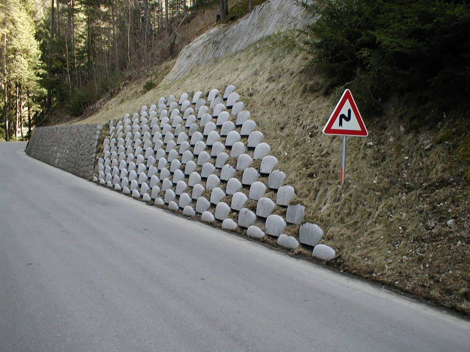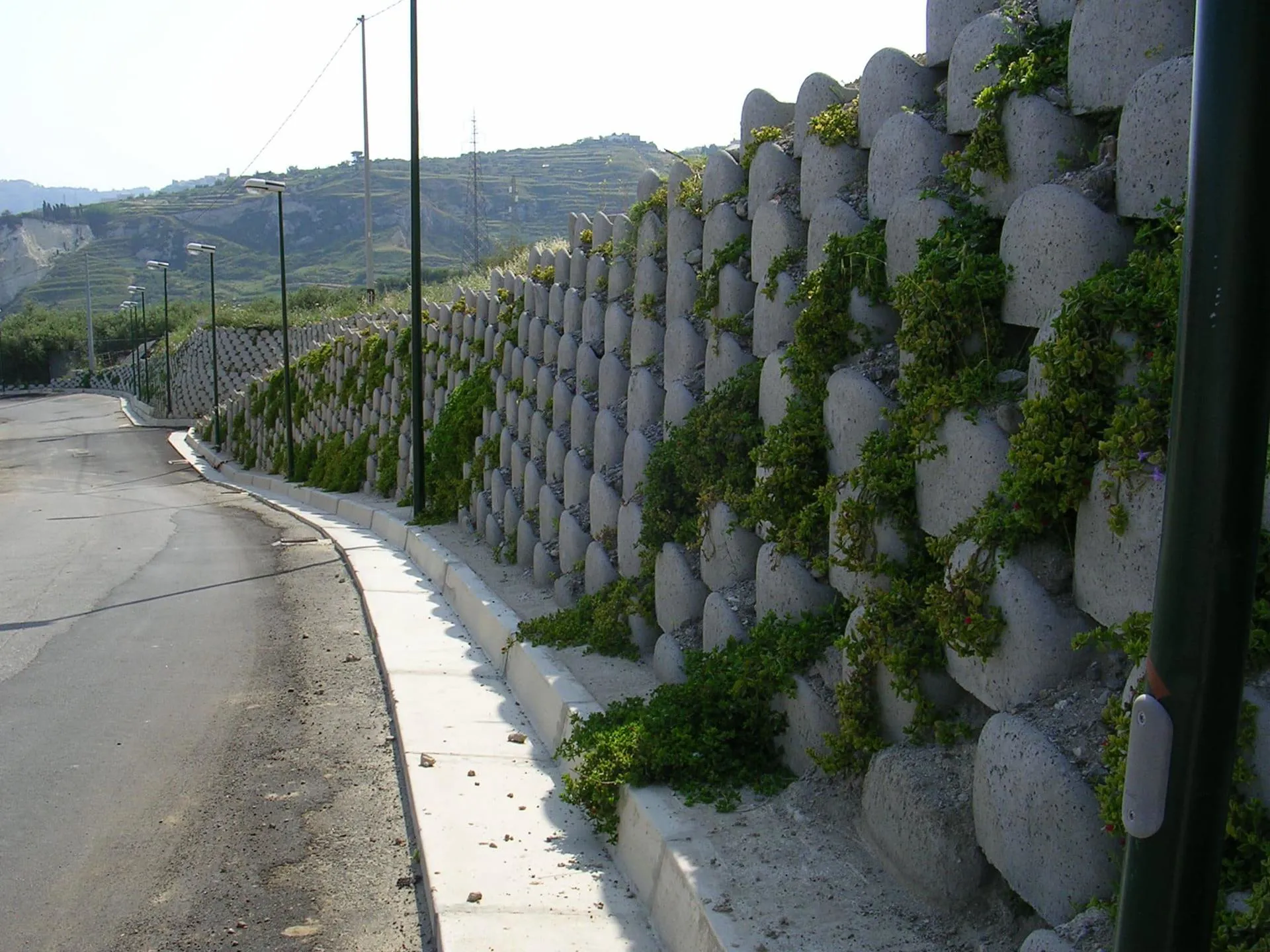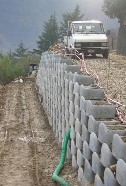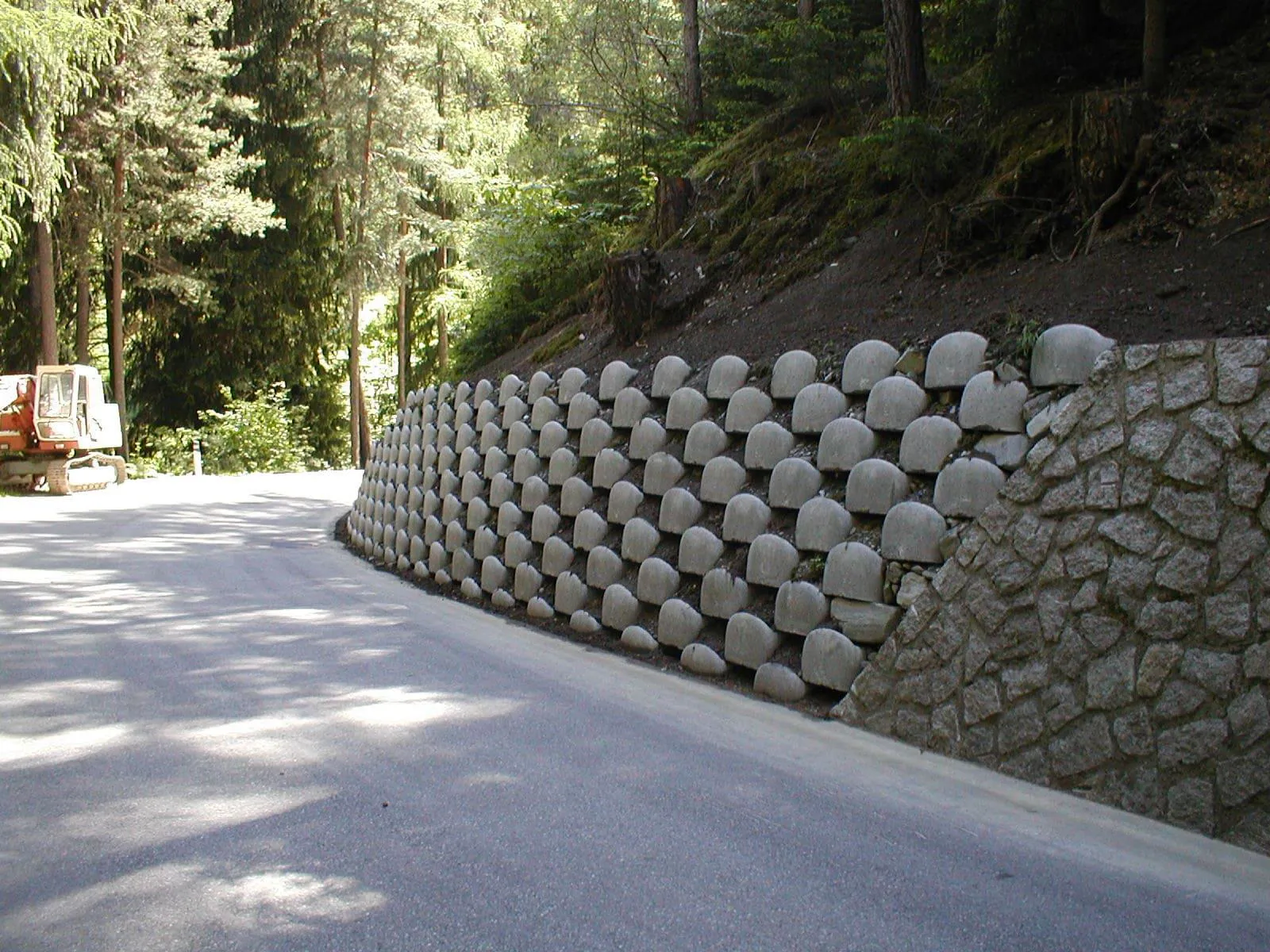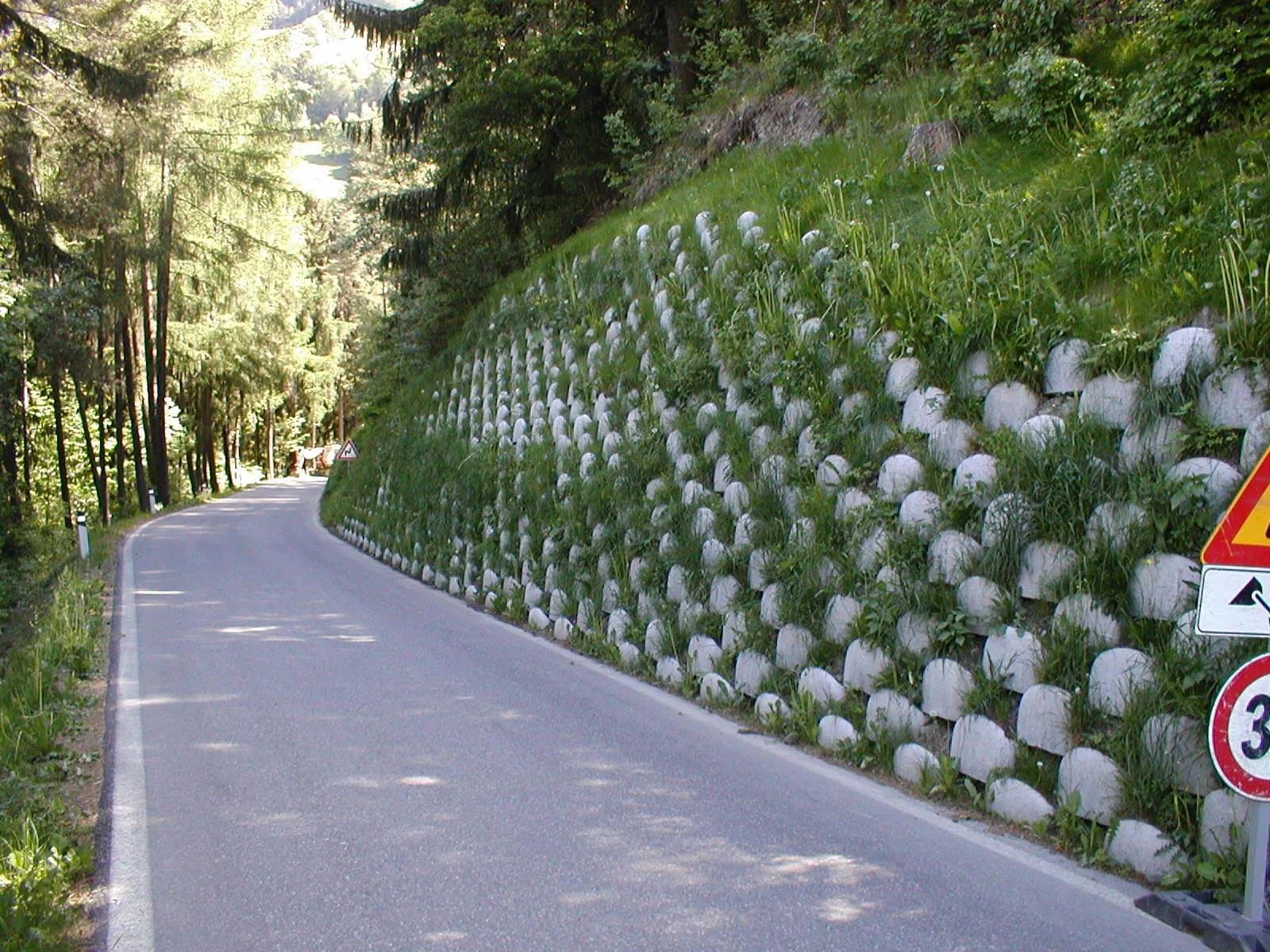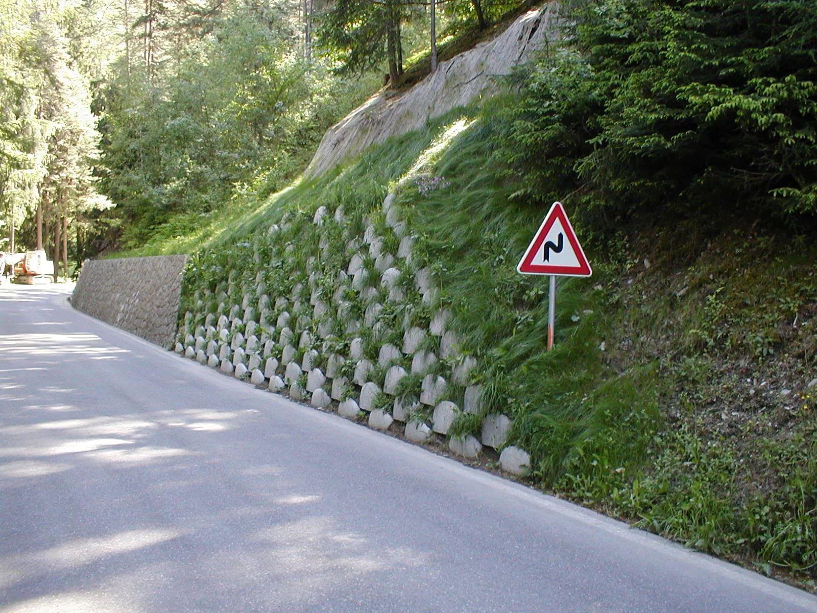 - Muri di sostegno per il consolidamento di sottoscarpa stradali;