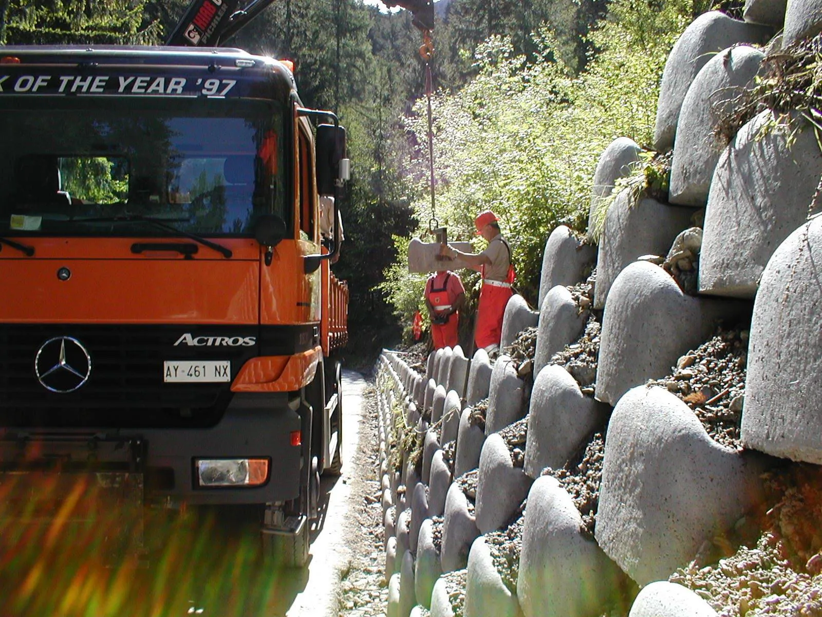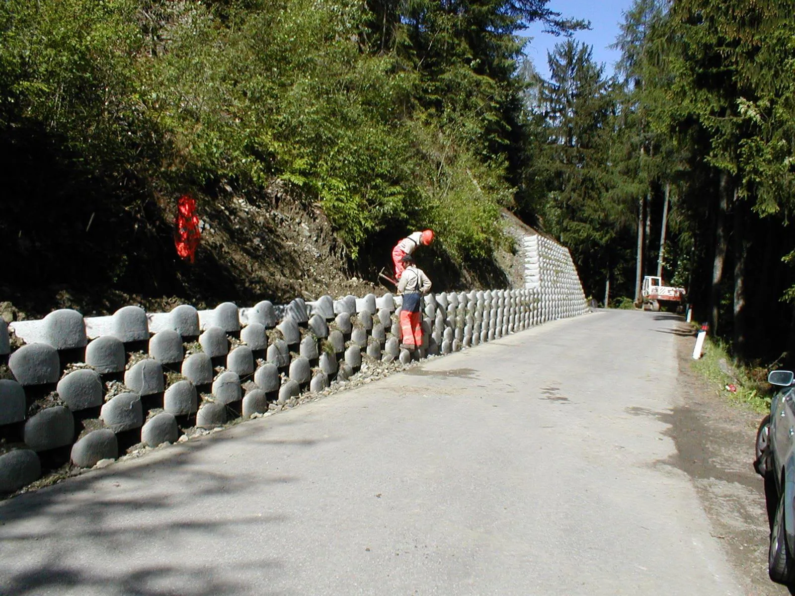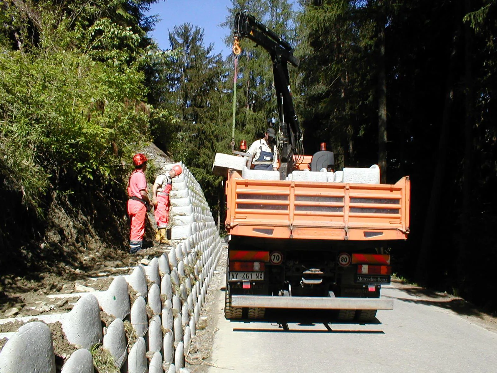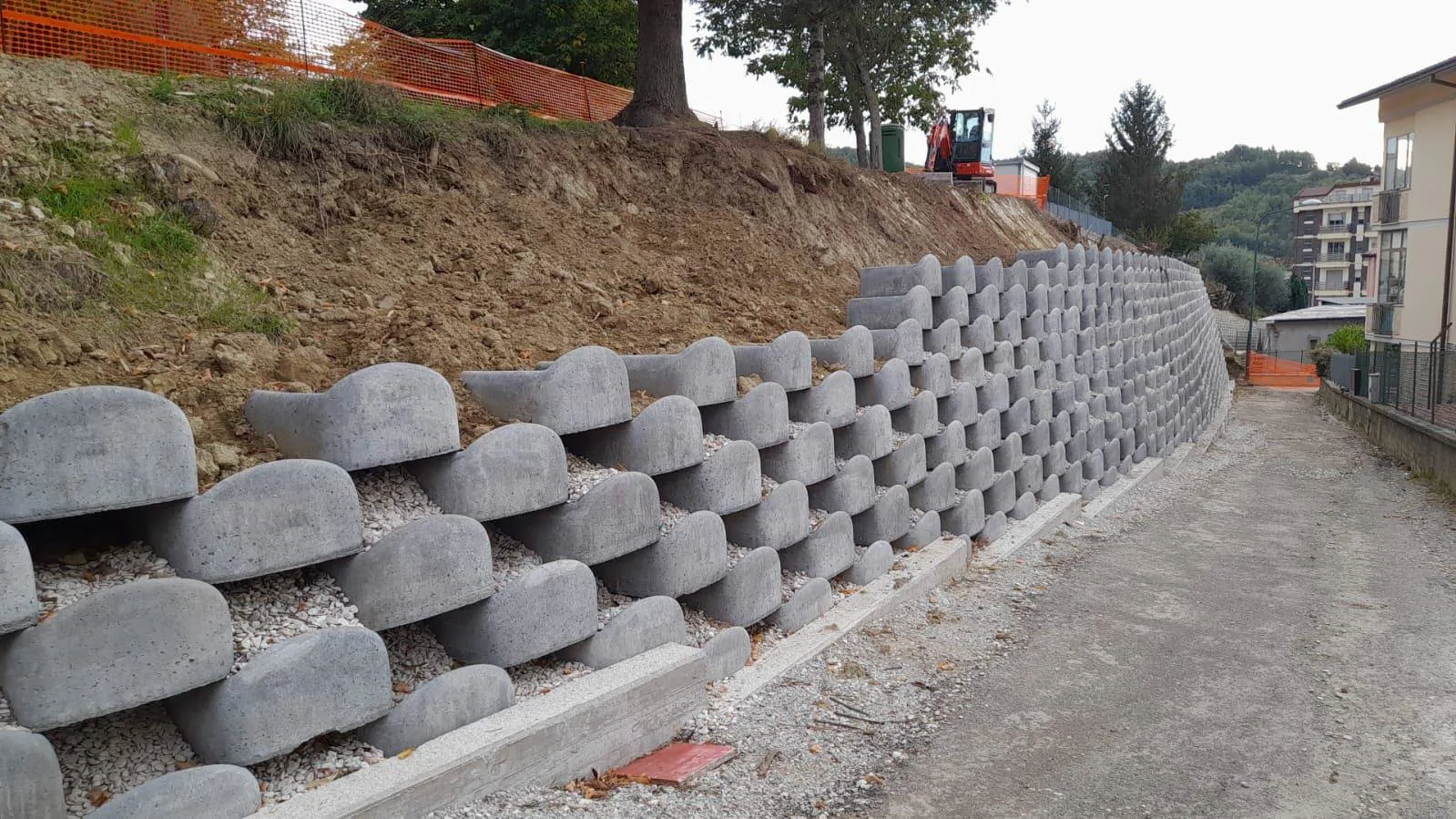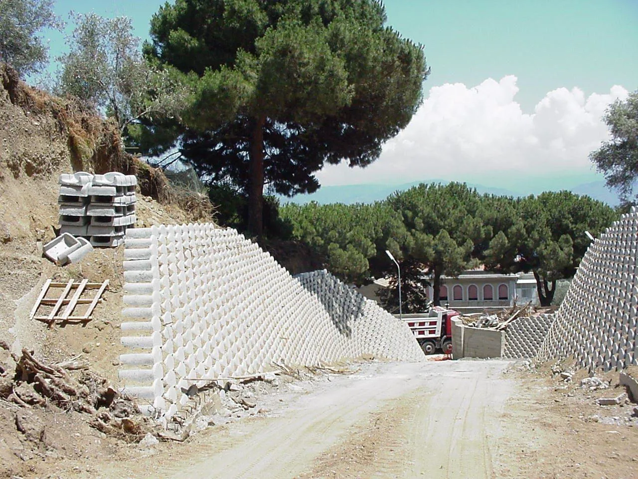 - Muri di sostegno per il consolidamento di sottoscarpa stradali;