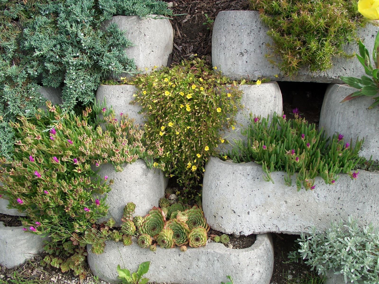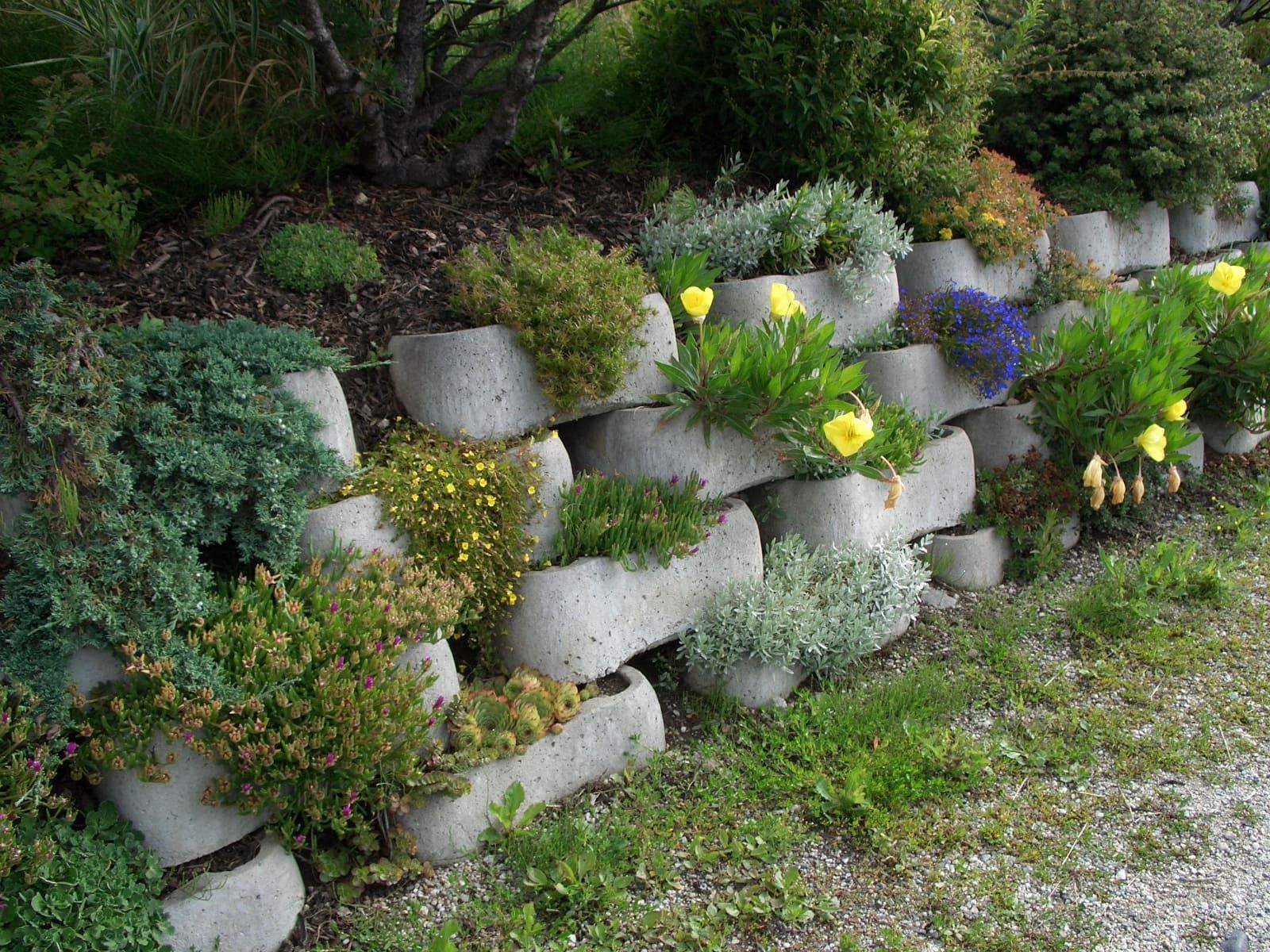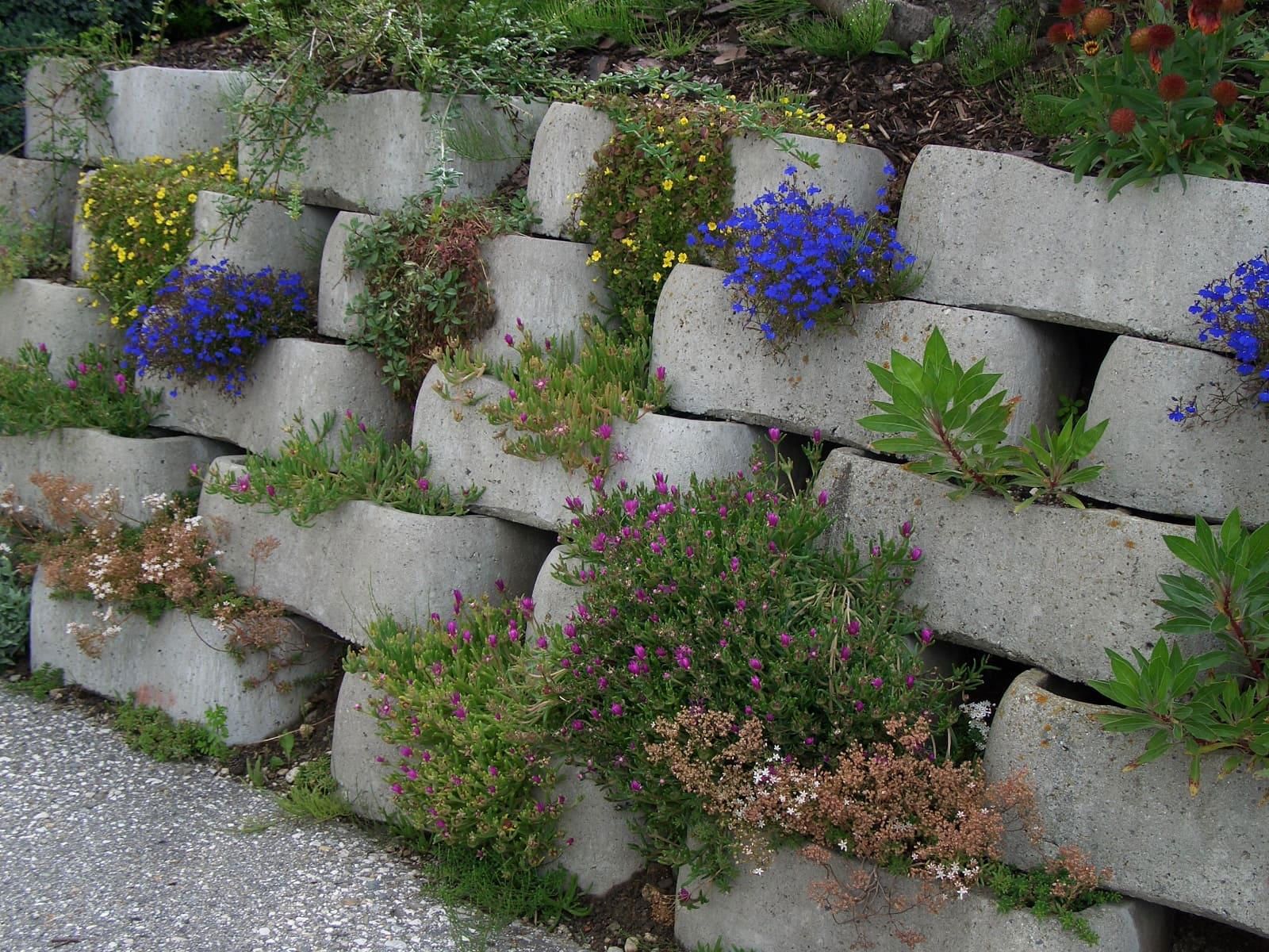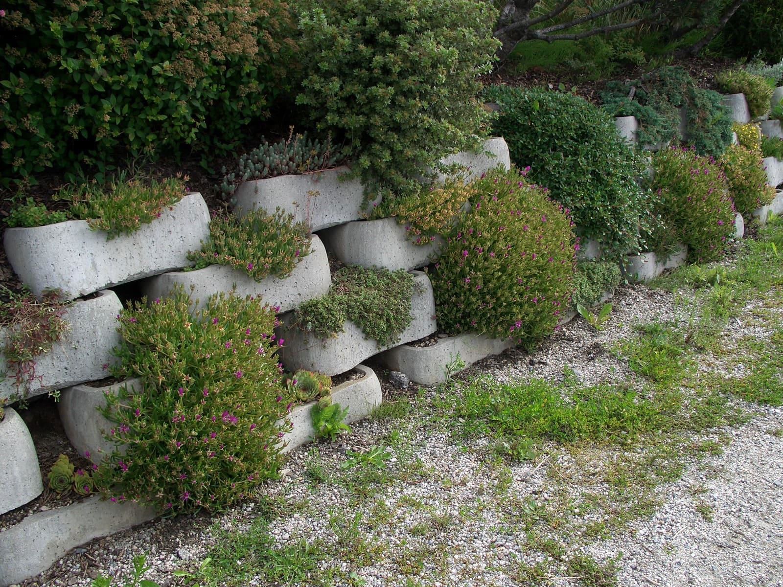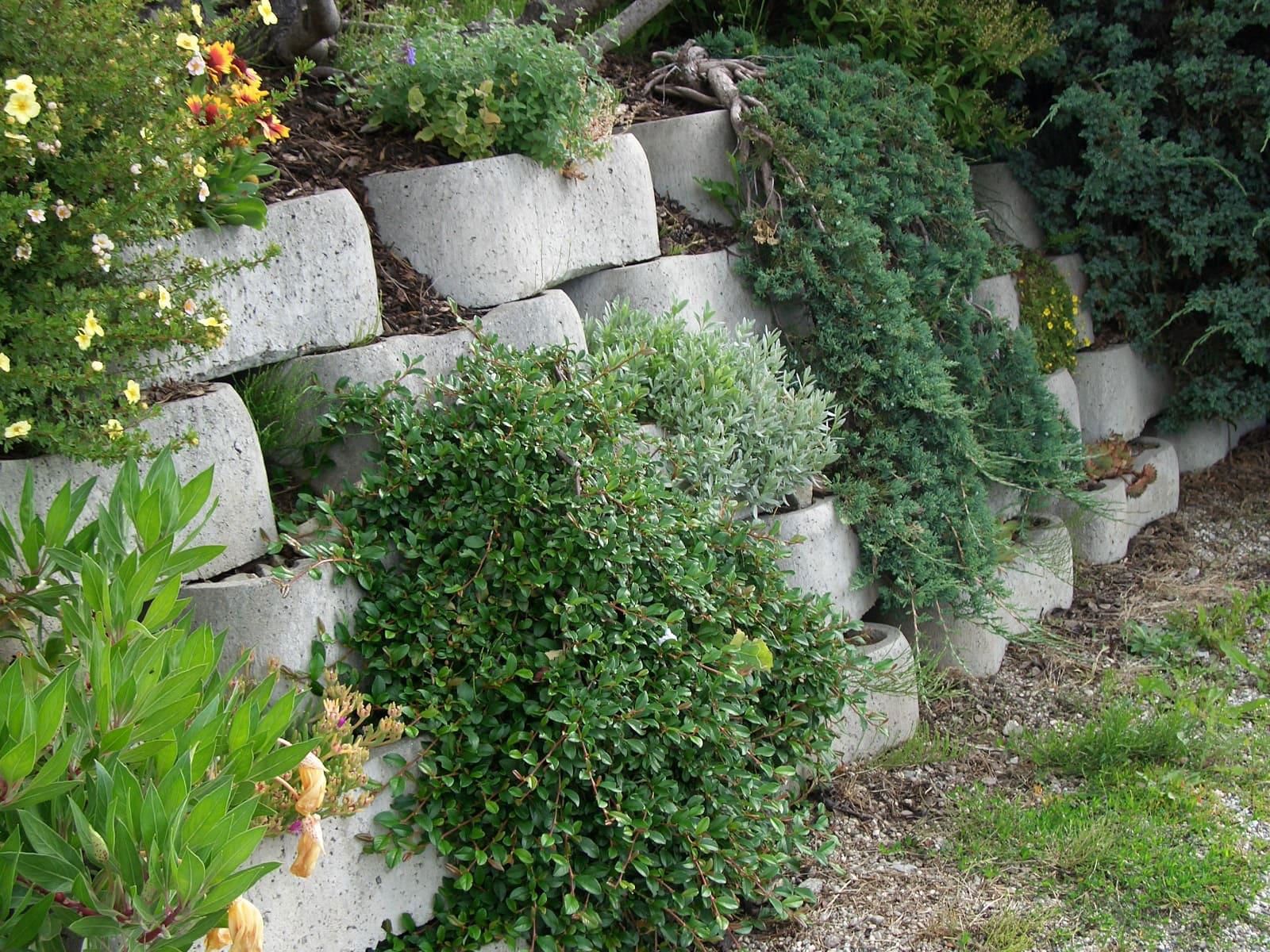 I SECONDO LÖFFEL® svolgono, fondamentalmente, la funzione di rivestimento di profili a scarpata di ogni tipo. Grazie alla loro struttura concava la terra contenuta al loro interno può assorbire maggiore umidità creando le condizioni ideali per la crescita della vegetazione mentre la presenza di un fondo dei blocchi “pieno” impedisce lo svuotamento del muro.