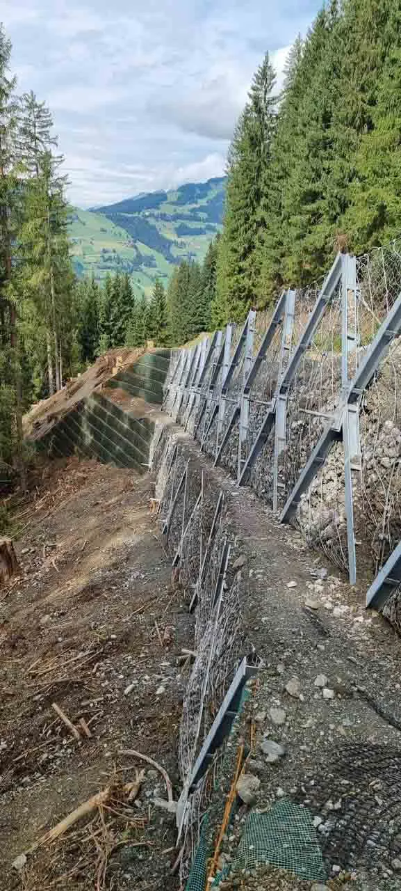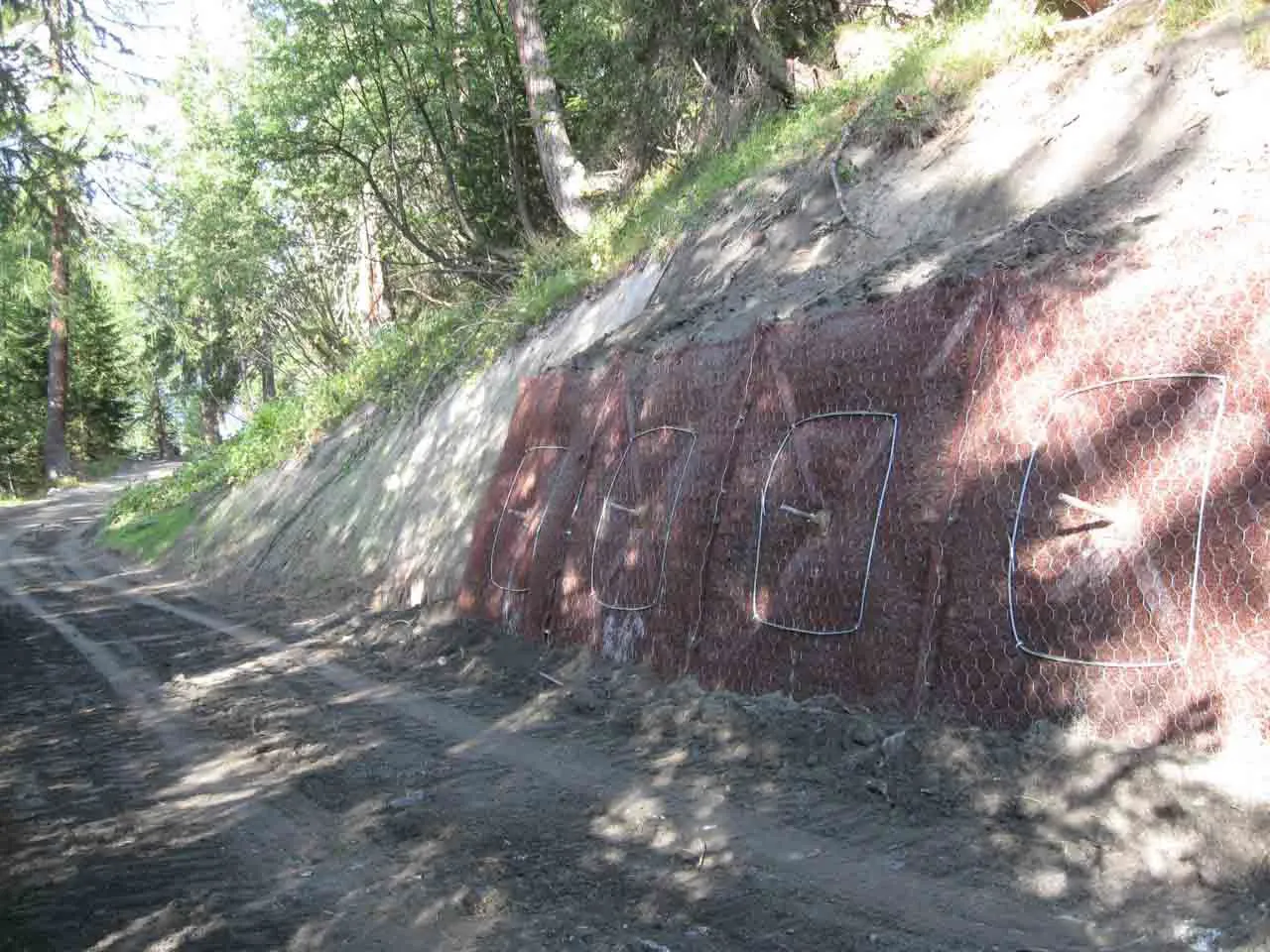 Barriere ERDOX TERRA MAXI per la realizzazione di opere di stabilizzazione di pendii (costruzione di strade e strade forestali, ripristino di frane, ripristino di muri d’argine) e per la realizzazione o opere di stabilizzazione di alvei di torrenti, la riprofilatura di canaloni soggetti a fenomeni di colata detritica e protezione di canali di scolo.