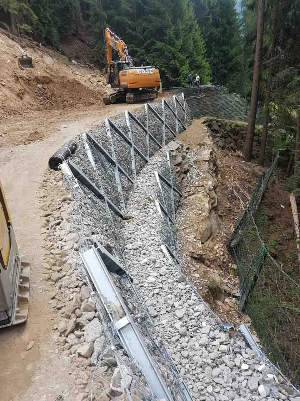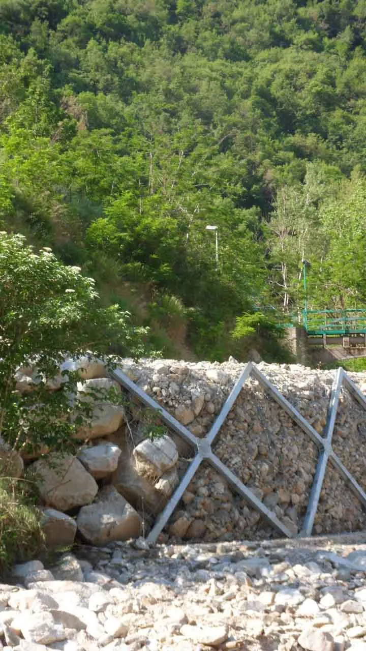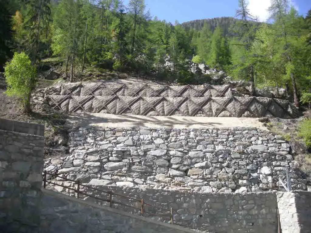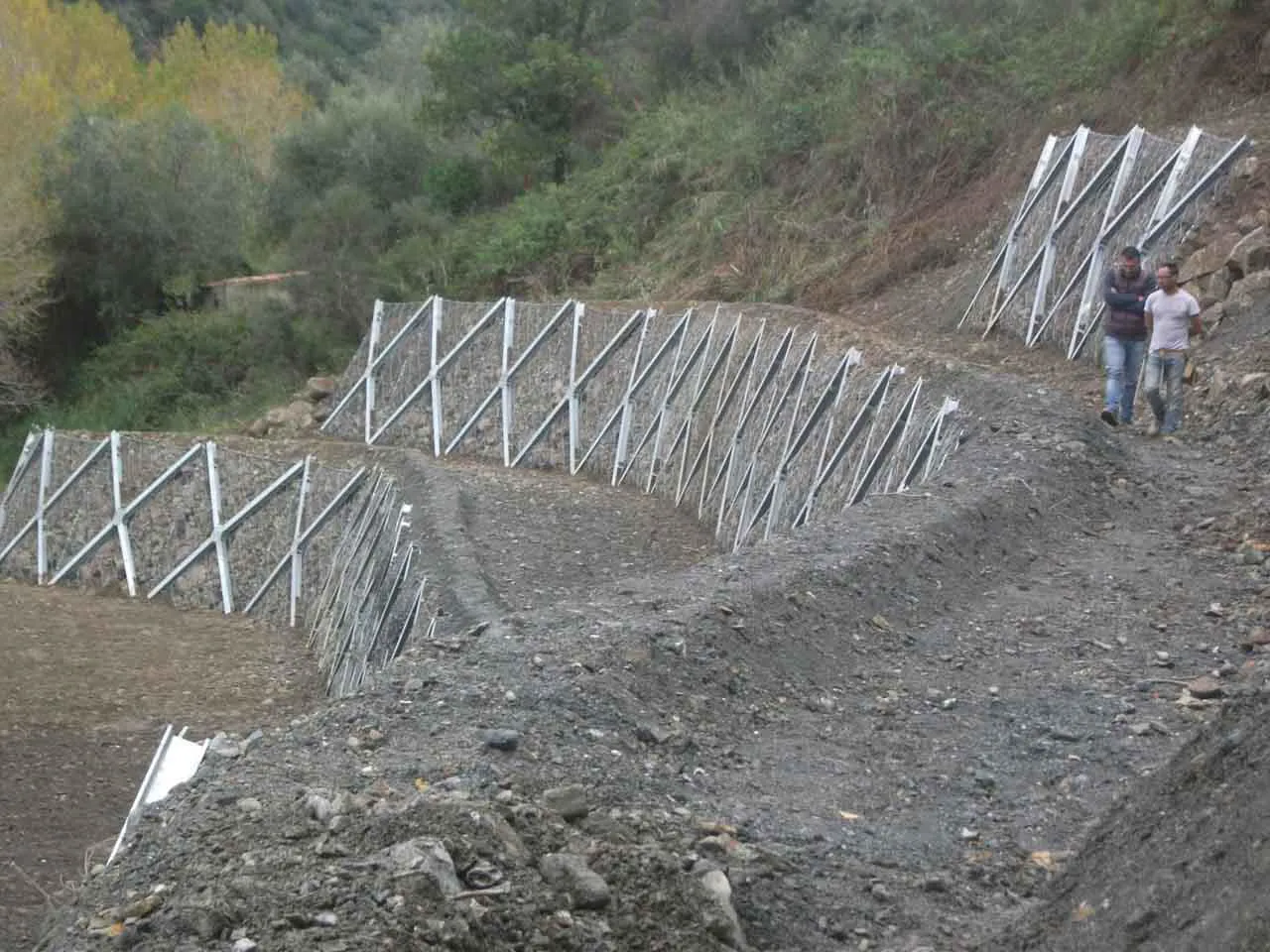 Tale tipologia di applicazione si concretizza attraverso la riprofilatura del versante finalizzata a ridurre le velocità in asse al canale e, conseguentemente, le velocità del potenziale fenomeno di colata. Per concezione e costruzione le barriere ErdoX permettono la realizzazione di opere di sostegno elastiche in grado di adattarsi a cedimenti differenziali del piano di imposta. La conformazione della struttura ErdoX consente di considerare la barriera perfettamente drenante. Il nostro ufficio Tecnico è disponibile per offrire supporto per la valutazione dell'applicazione del sistema alle vostre specifiche esigenze progettuali.