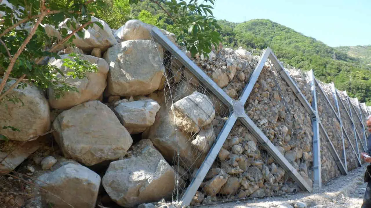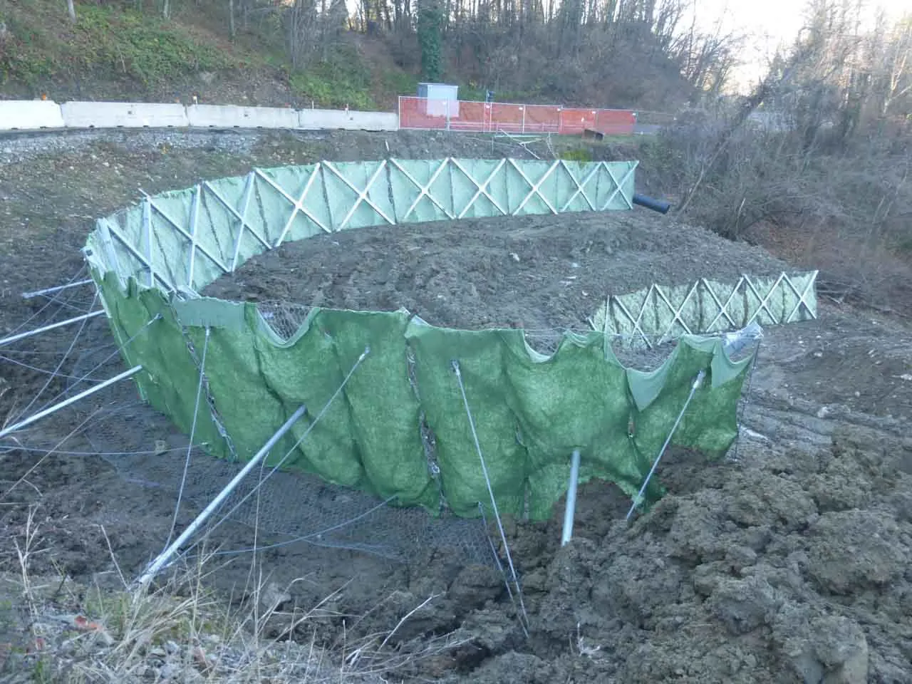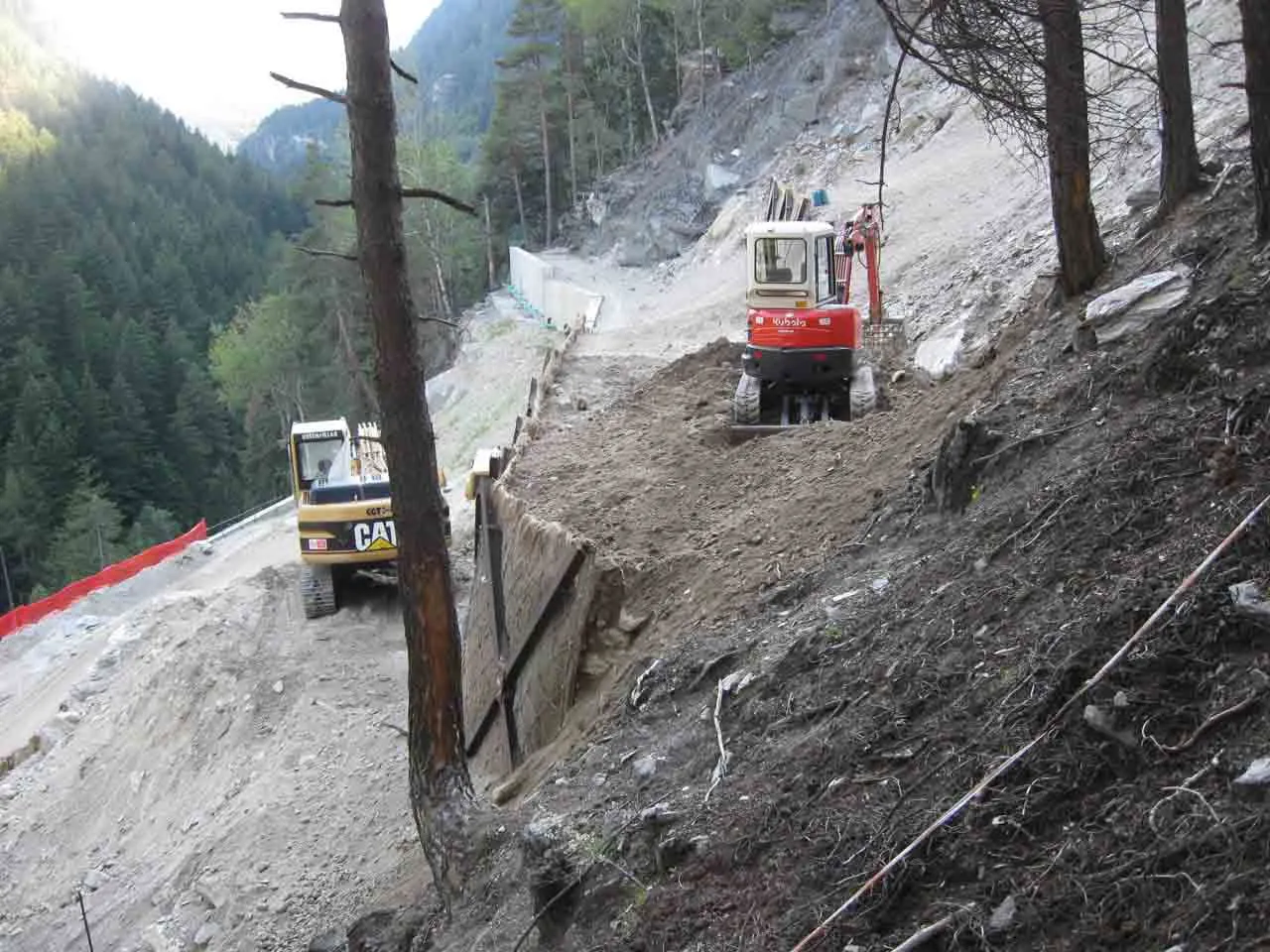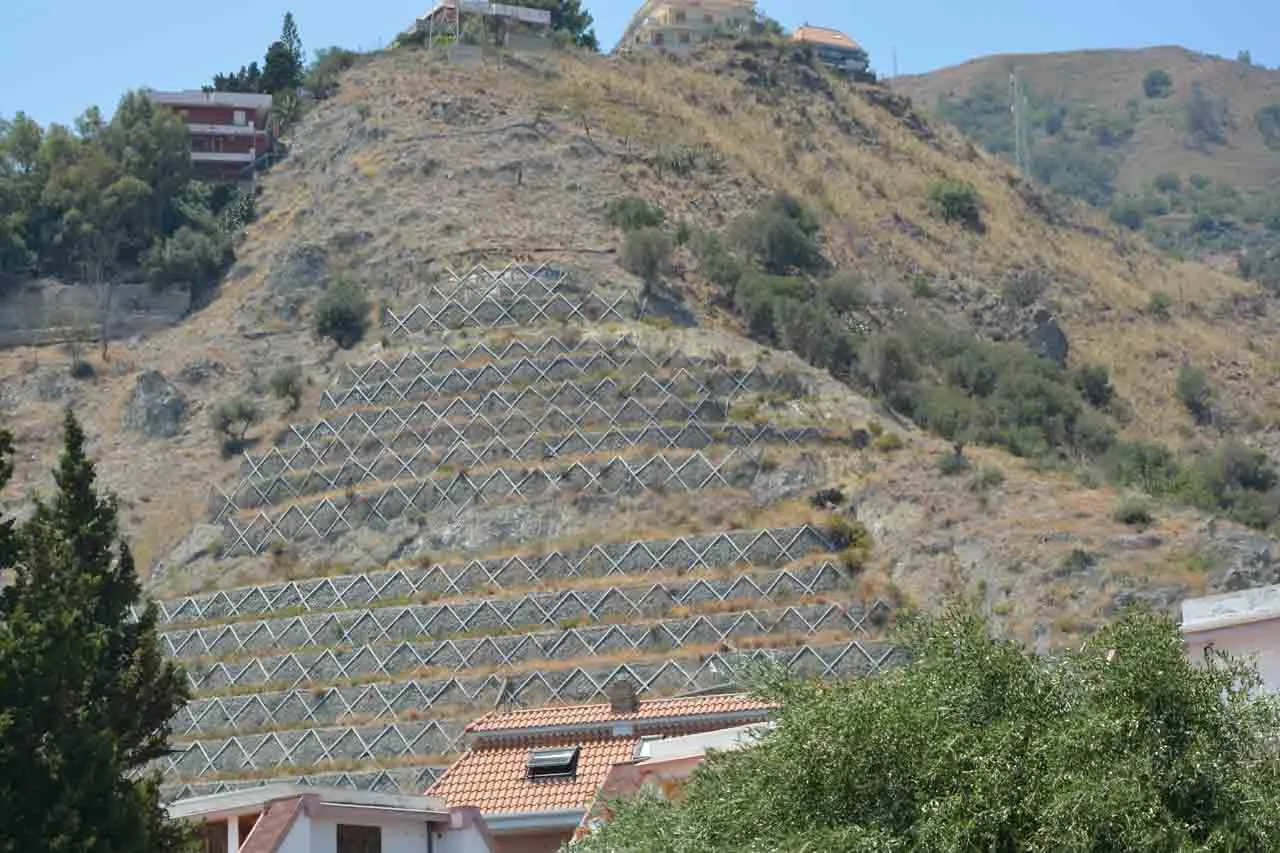 Tale tipologia di applicazione si concretizza attraverso la riprofilatura del versante finalizzata a ridurre le velocità in asse al canale e, conseguentemente, le velocità del potenziale fenomeno di colata. Per concezione e costruzione le barriere ErdoX permettono la realizzazione di opere di sostegno elastiche in grado di adattarsi a cedimenti differenziali del piano di imposta. La conformazione della struttura ErdoX consente di considerare la barriera perfettamente drenante. Il nostro ufficio Tecnico è disponibile per offrire supporto per la valutazione dell'applicazione del sistema alle vostre specifiche esigenze progettuali.
