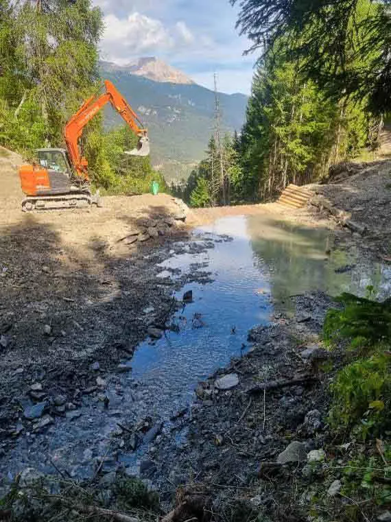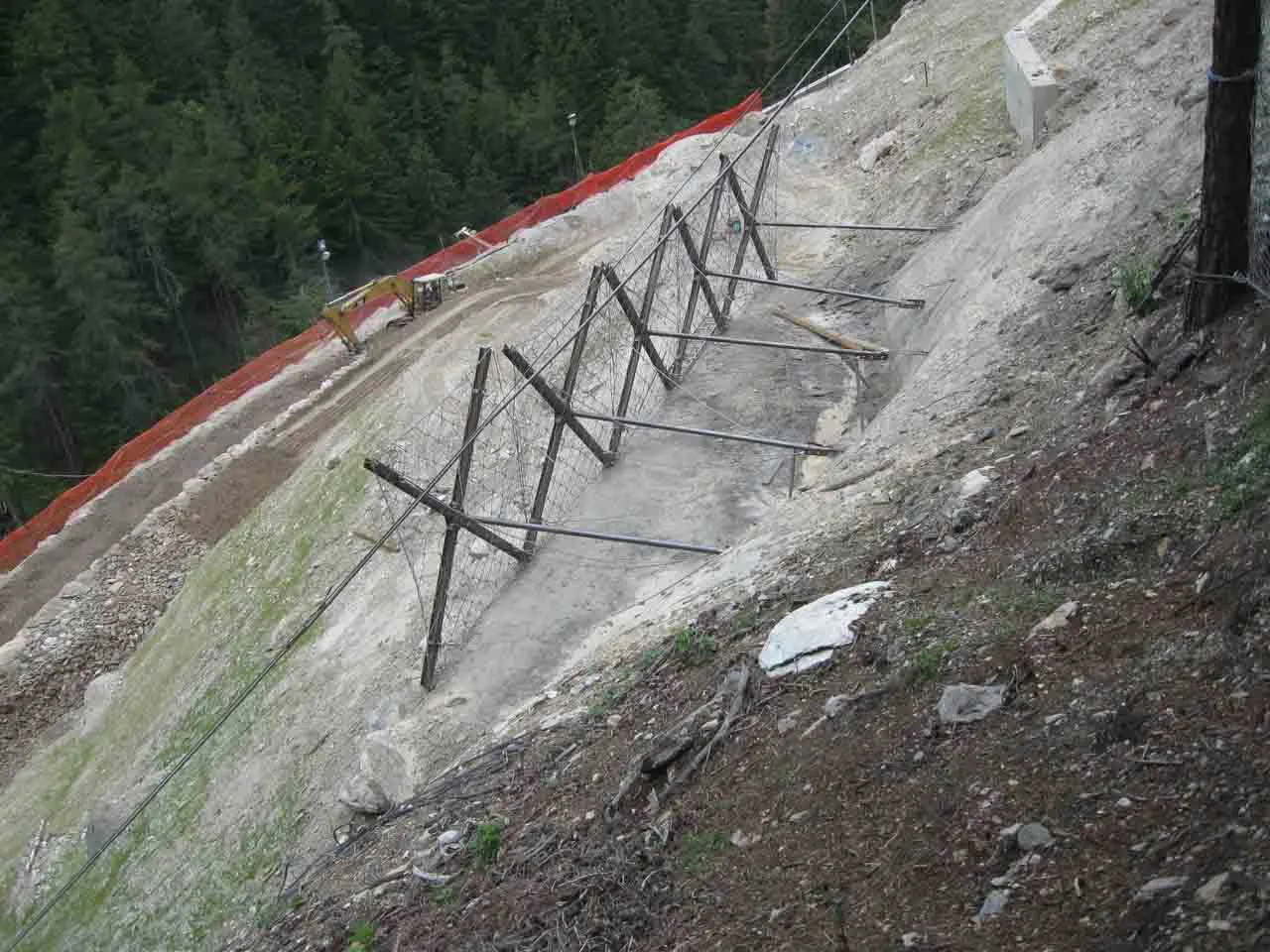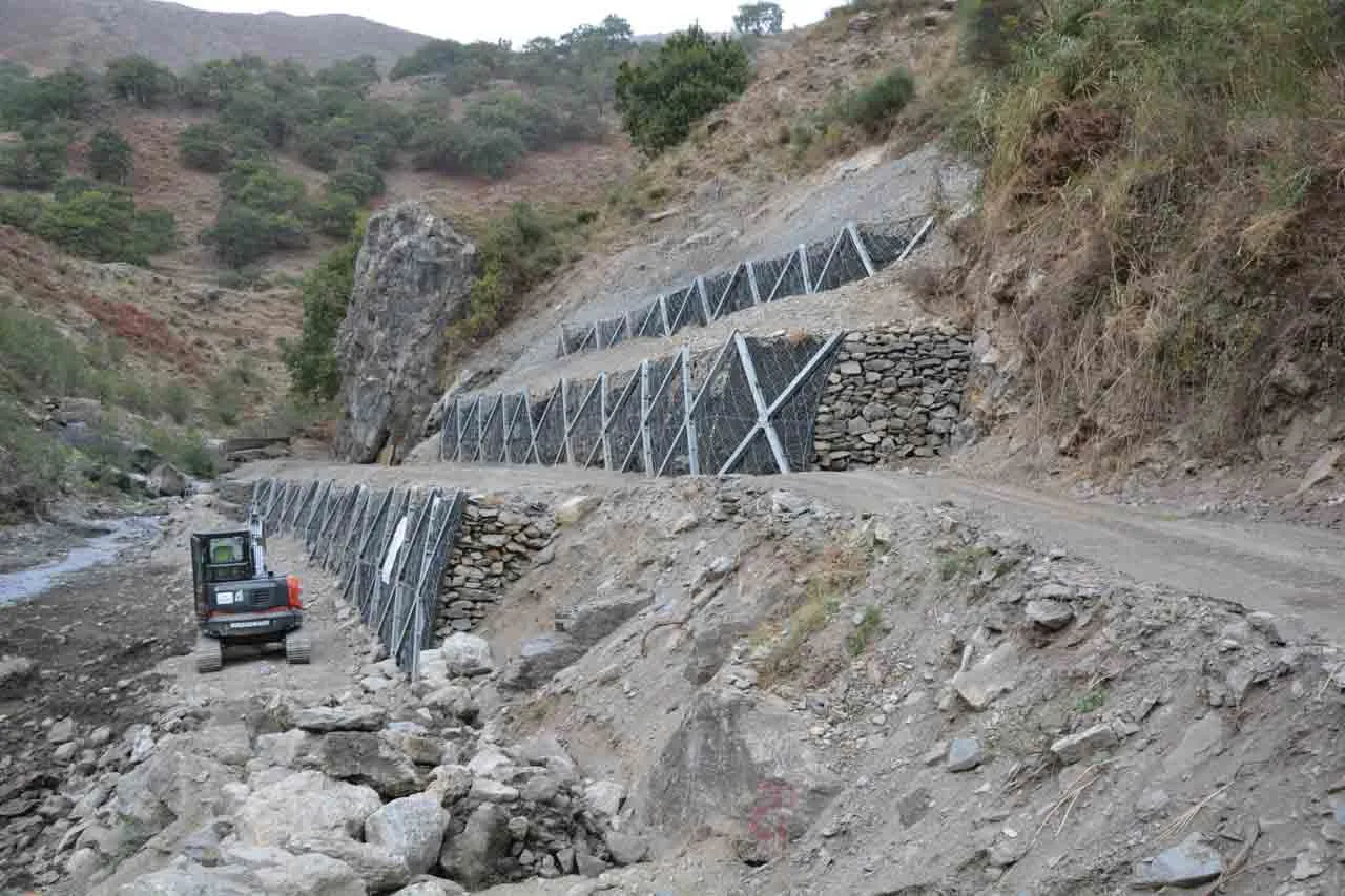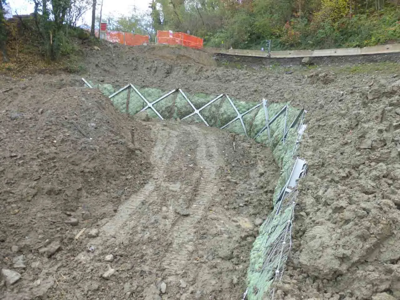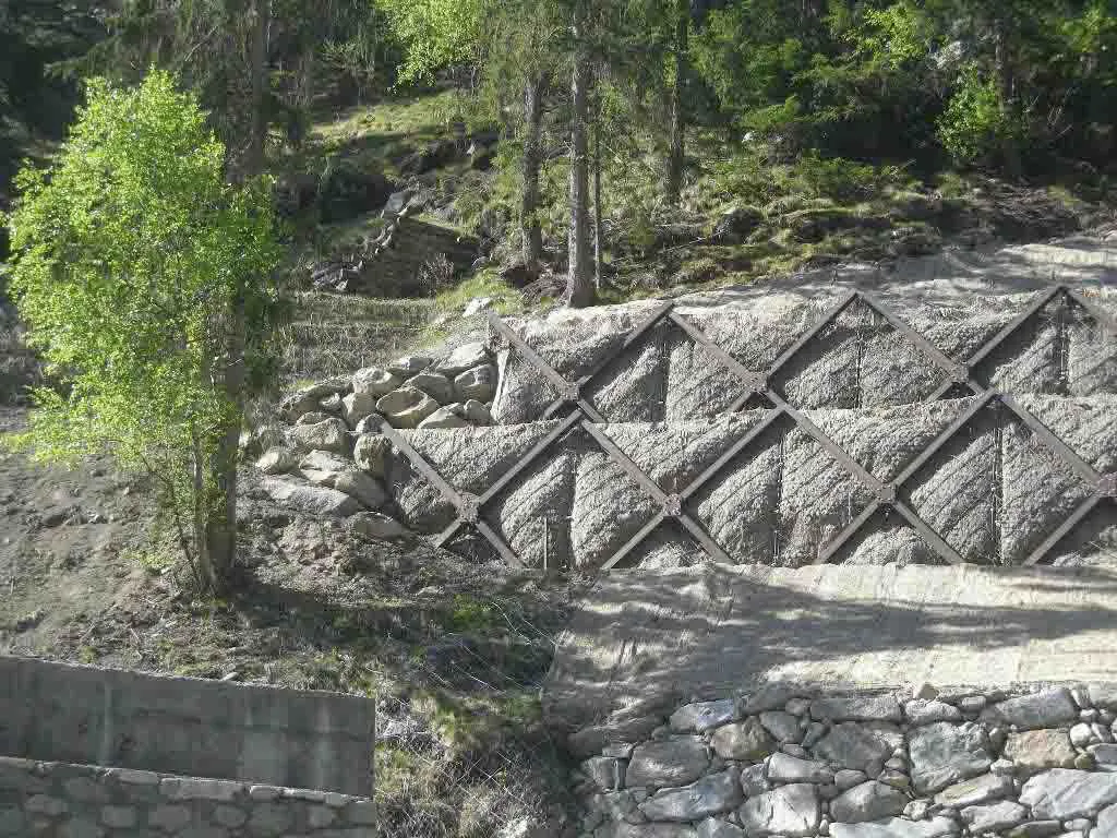 Tale tipologia di applicazione si concretizza attraverso la riprofilatura del versante finalizzata a ridurre le velocità in asse al canale e, conseguentemente, le velocità del potenziale fenomeno di colata. Per concezione e costruzione le barriere ErdoX permettono la realizzazione di opere di sostegno elastiche in grado di adattarsi a cedimenti differenziali del piano di imposta. La conformazione della struttura ErdoX consente di considerare la barriera perfettamente drenante. Il nostro ufficio Tecnico è disponibile per offrire supporto per la valutazione dell'applicazione del sistema alle vostre specifiche esigenze progettuali.