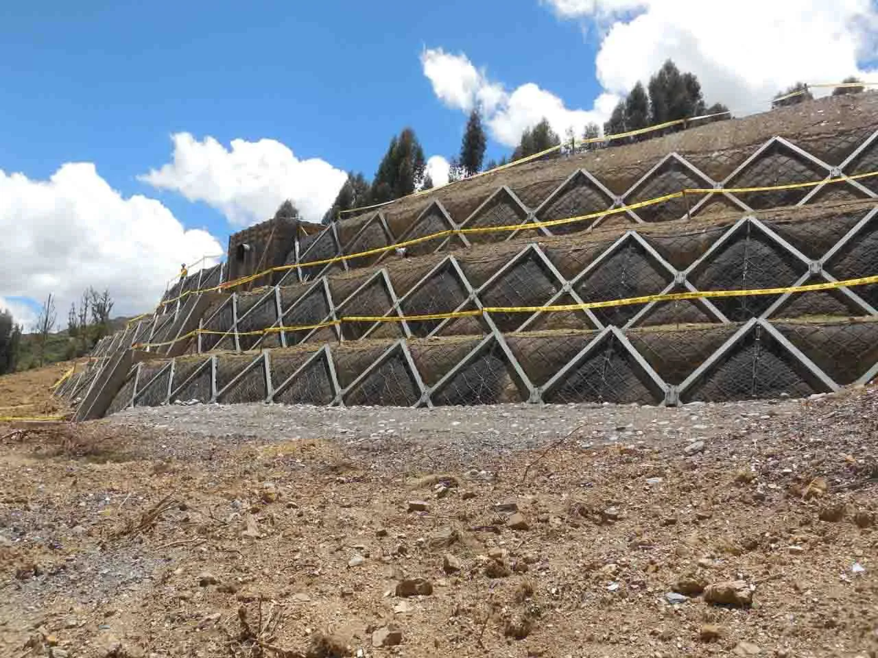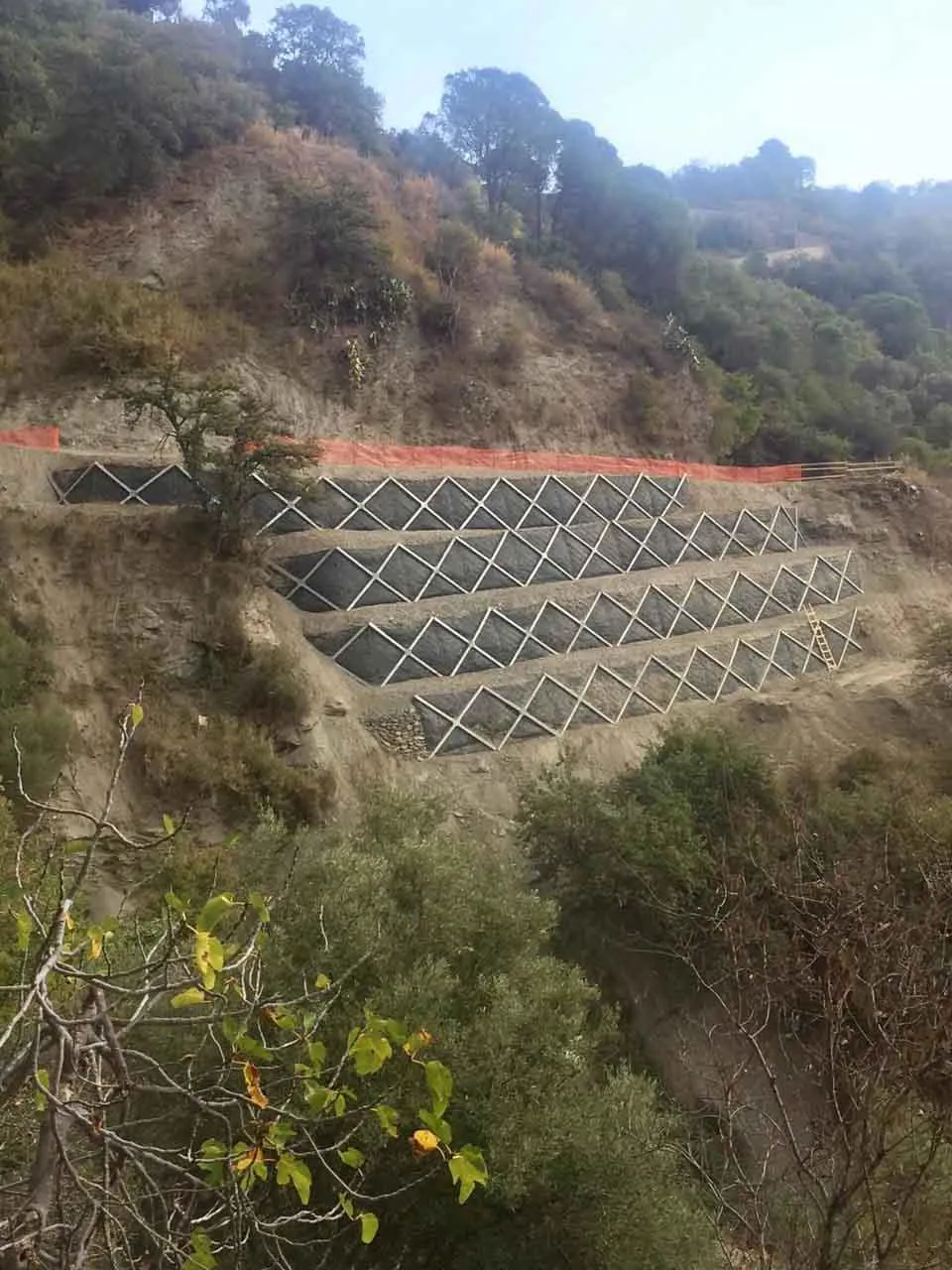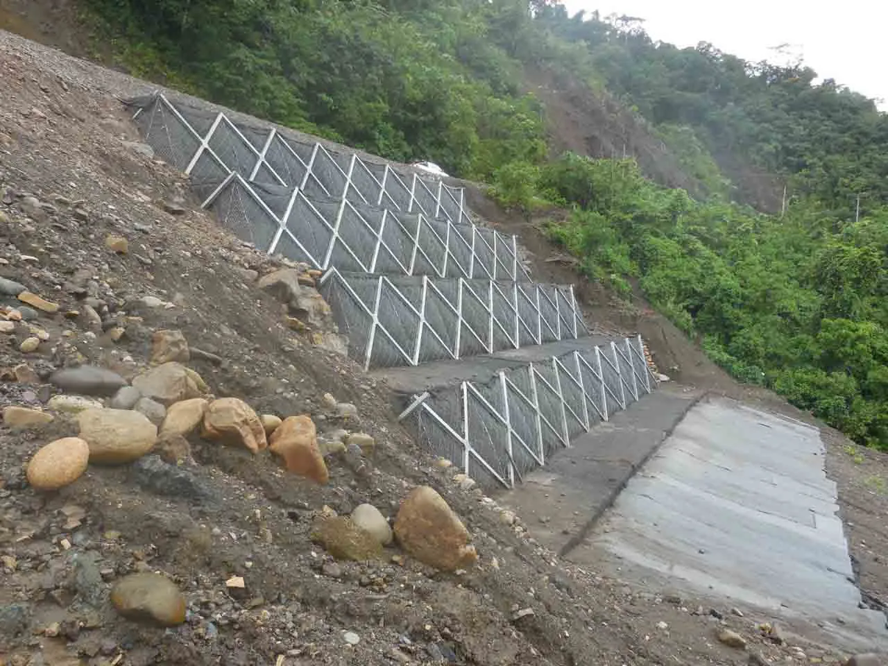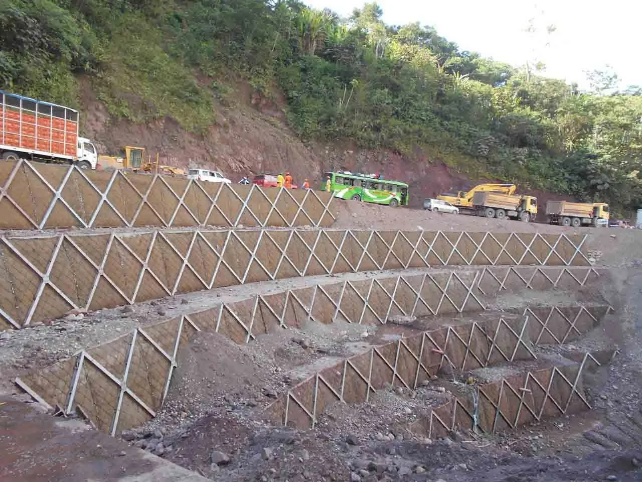 Le strutture Erdox Terra (dim. H310x360 cm ca. o H360x310 cm ca.) rappresentano la soluzione più rapida e sicura per la realizzazione di interventi per la stabilizzazione di versanti in frana, per il consolidamento, in “somma urgenza”, di sottoscarpa stradali interessati da fenomeni gravitativi superficiali e per la riprofilatura di pendii soggetti a fenomeni di colata detritica (debris-flow).