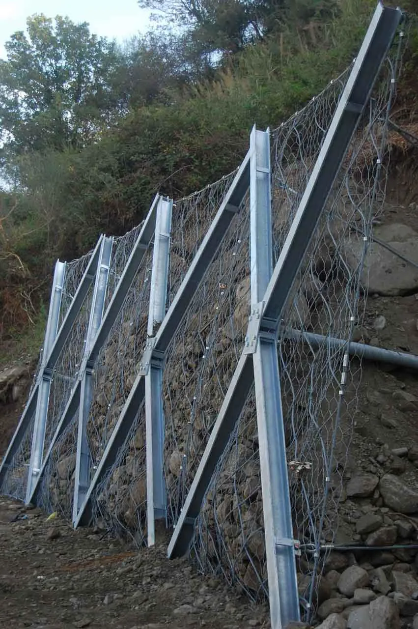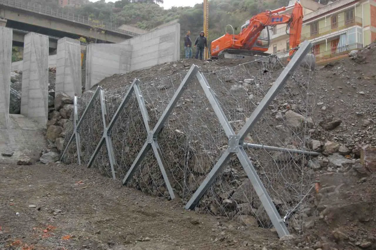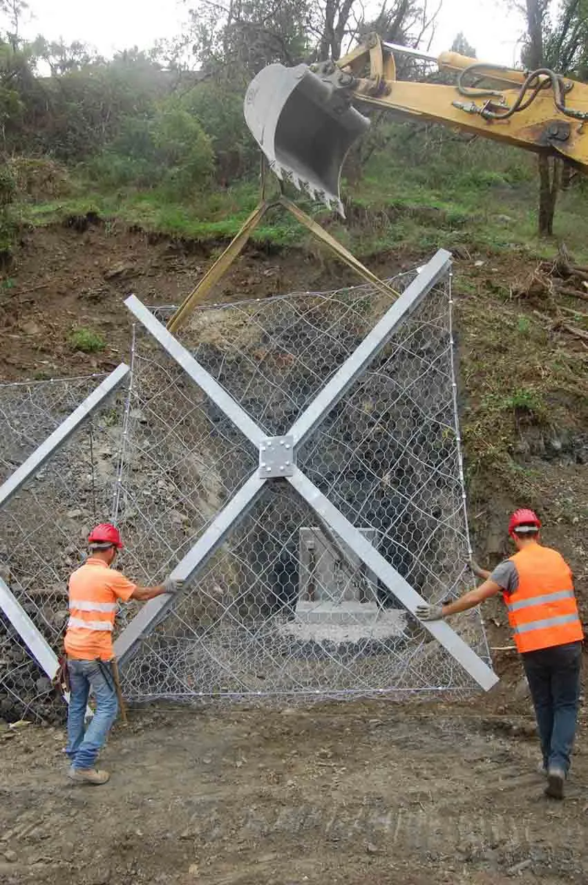 In questa tipologia di applicazioni l’elasticità del sistema che permette elevata capacità di adattamento a possibili cedimenti differenziali del piano di posa amplificano i vantaggi della soluzione. Fondamentale appare l’applicazione di una rete di rinfittimento a doppia torsione che risvoltata al piede, verso monte, per circa 150 cm; tale accorgimento, oltre ad aumentare il coefficiente di attrito allo scorrimento, ha la principale funzione di garantire le barriere da possibili fenomeni di svuotamento, conseguenti all’insorgere di pericolosi fenomeni di rigurgito al piede. Le applicazioni in ambito idraulico necessitano di attente analisi e progettazione direzionate a contenere il flusso di acqua e detriti considerando le massime portate di deflusso e le sezioni idrauliche del sito di intervento utili a definire la migliore soluzione progettuale. Il nostro ufficio Tecnico è disponibile per offrire supporto per la valutazione dell'applicazione del sistema alle vostre specifiche esigenze progettuali.