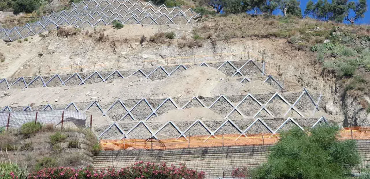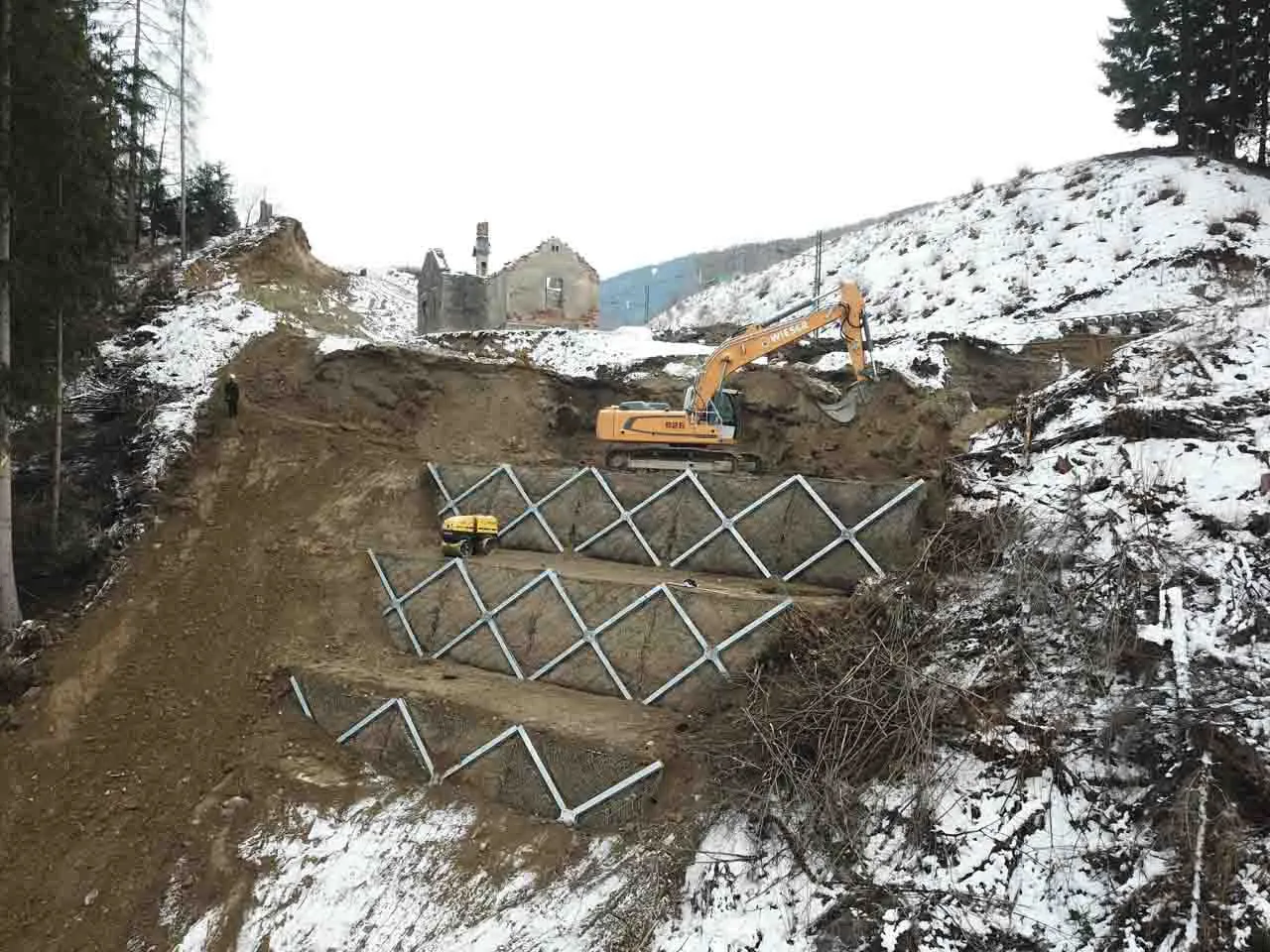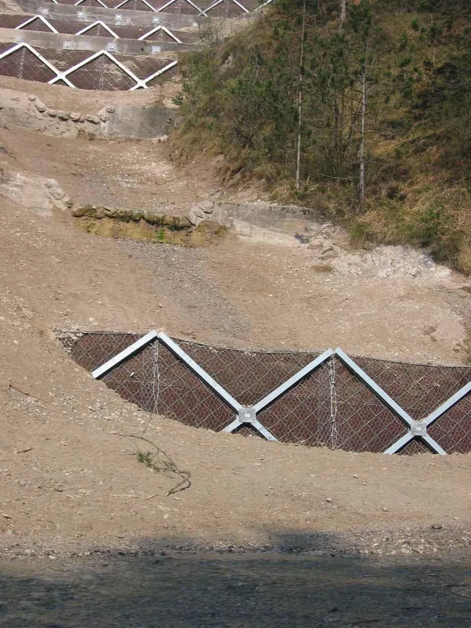 Le strutture Erdox Terra (dim. H310x360 cm ca. o H360x310 cm ca.) rappresentano la soluzione più rapida e sicura per la realizzazione di interventi per la stabilizzazione di versanti in frana.