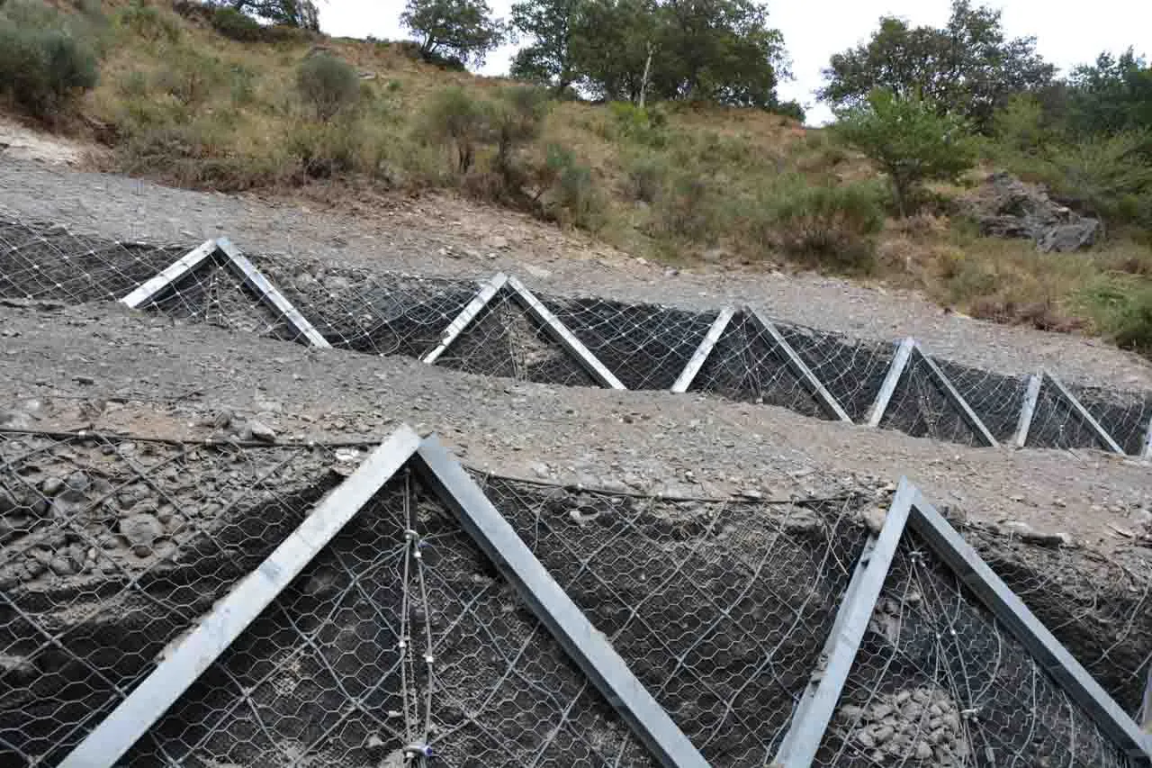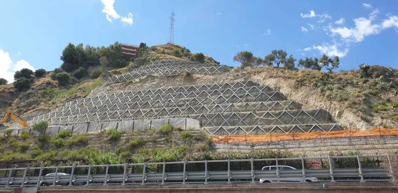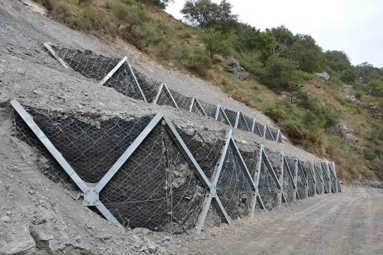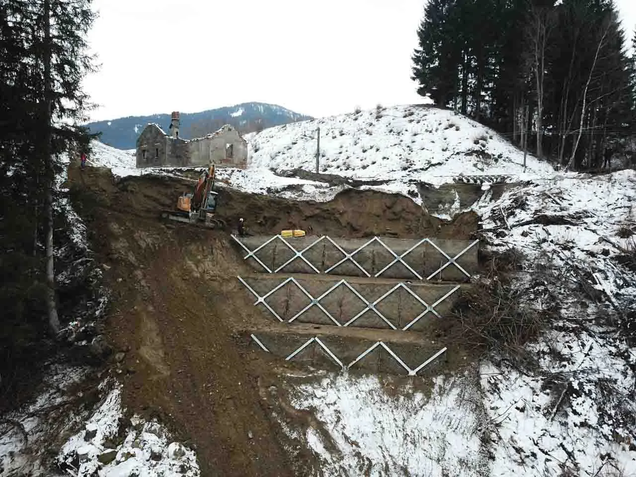 Le strutture Erdox Terra (dim. H310x360 cm ca. o H360x310 cm ca.) rappresentano la soluzione più rapida e sicura per la realizzazione di interventi per la stabilizzazione di versanti in frana.