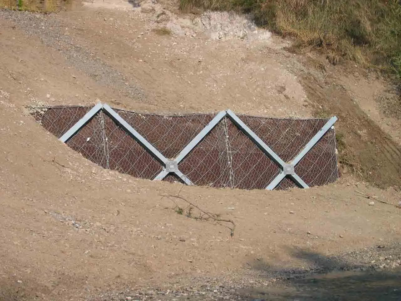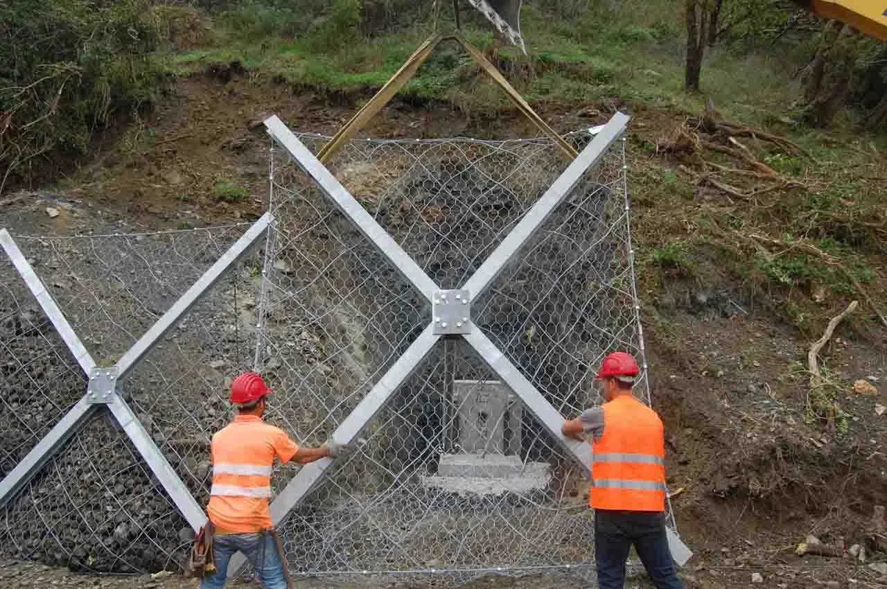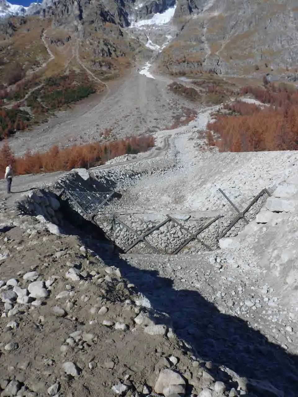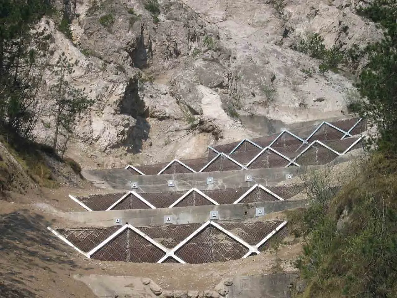 Le strutture Erdox Terra (dim. H310x360 cm ca. o H360x310 cm ca.) rappresentano la soluzione più rapida e sicura per la realizzazione di opere di consolidamento “attivo” di canaloni soggettia a fenomeni di debris-flow.