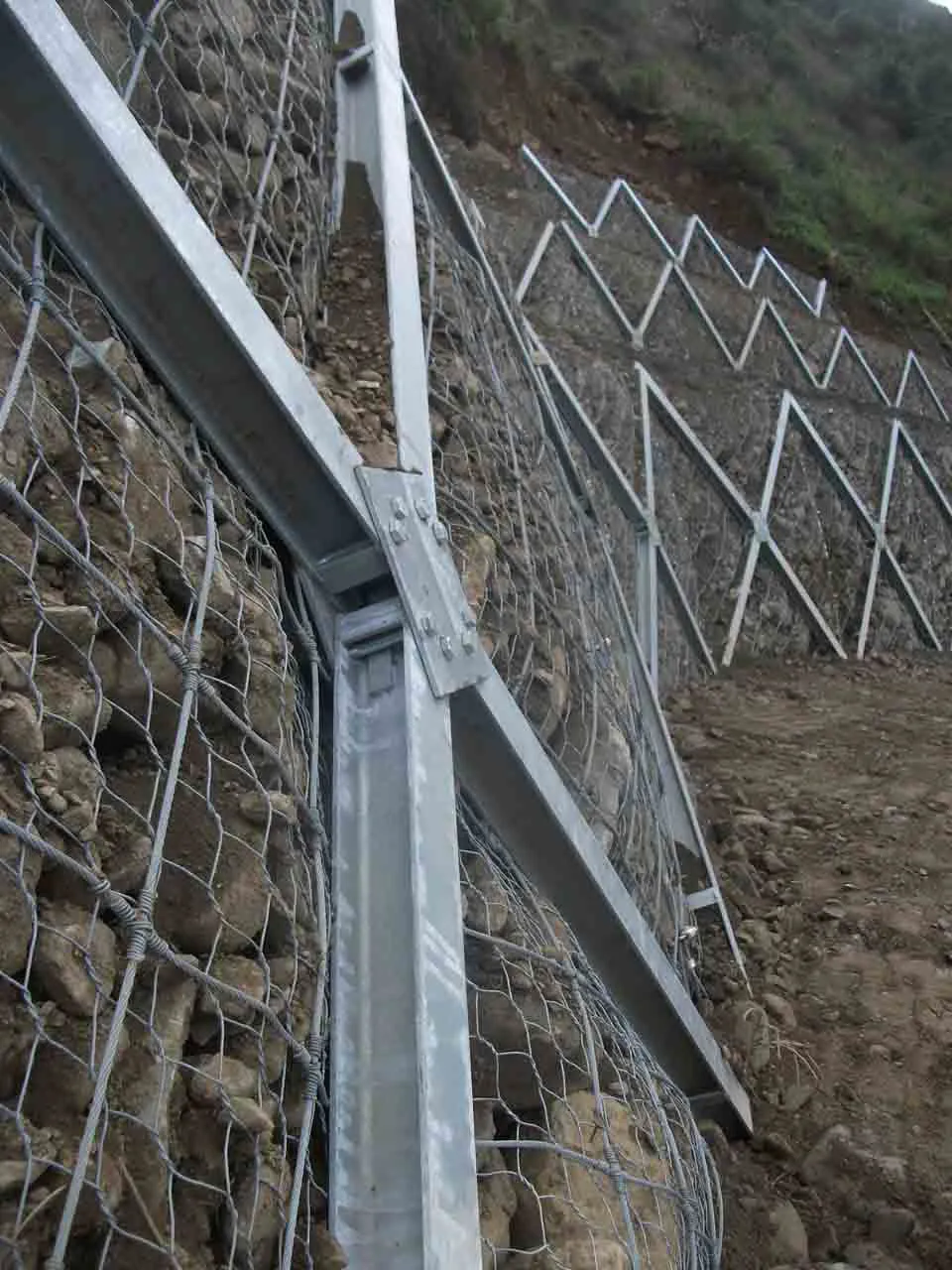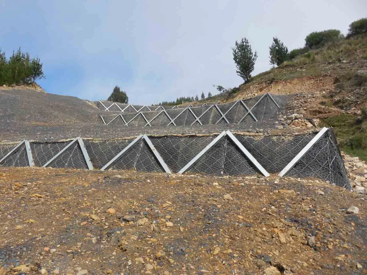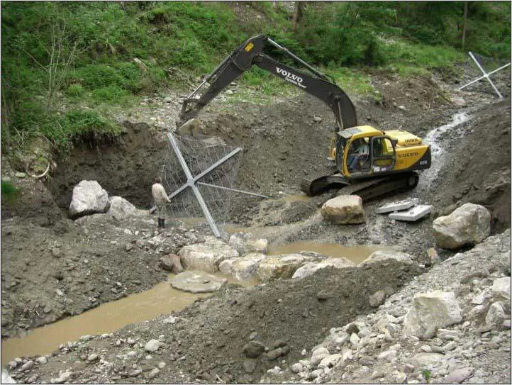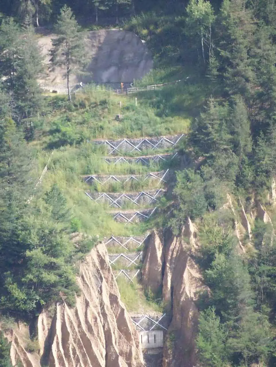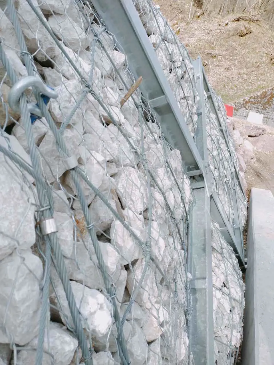 Le strutture Erdox Terra (dim. H310x360 cm ca. o H360x310 cm ca.) rappresentano la soluzione più rapida e sicura per la realizzazione di opere di consolidamento “attivo” di canaloni soggettia a fenomeni di debris-flow.