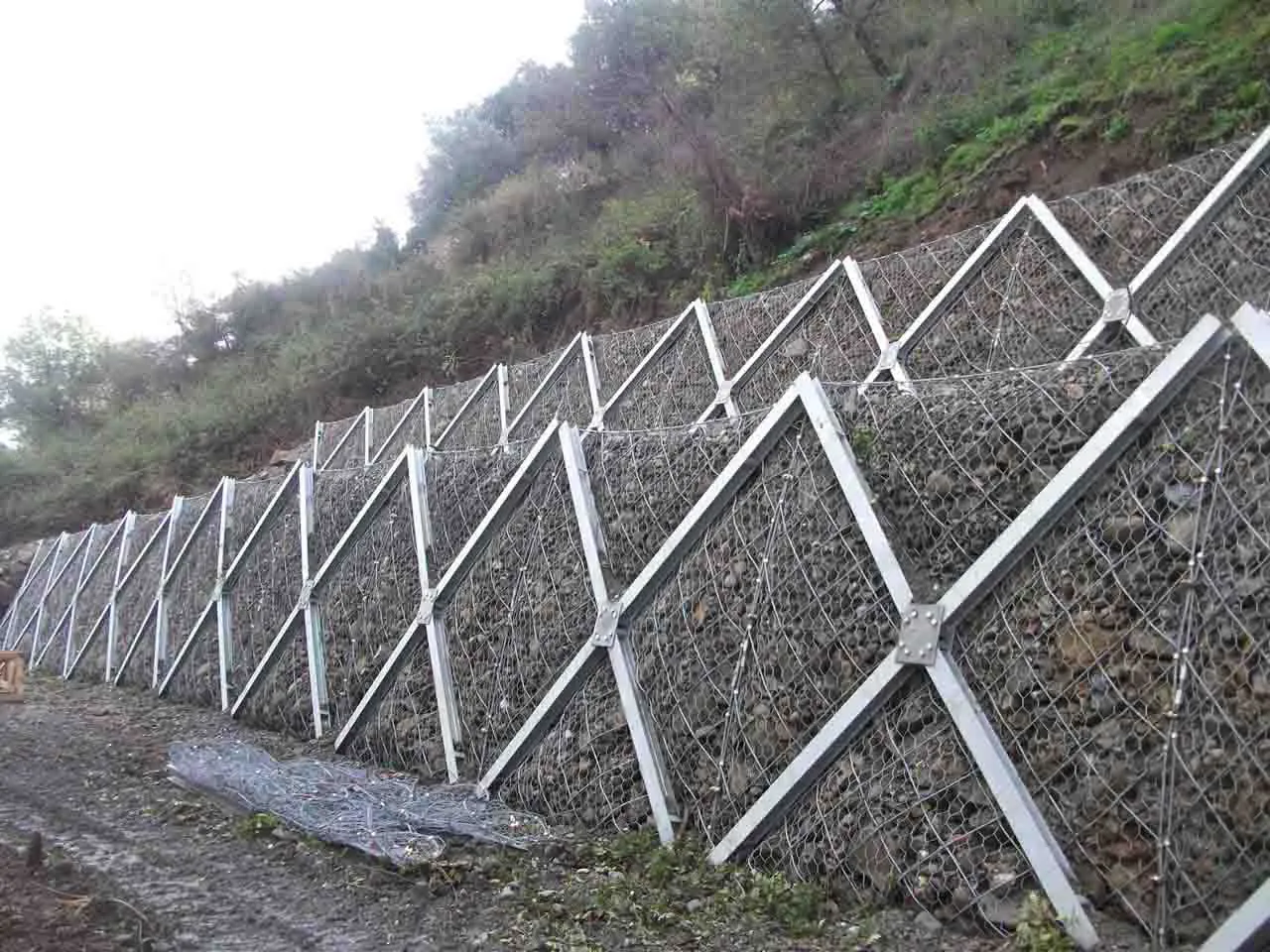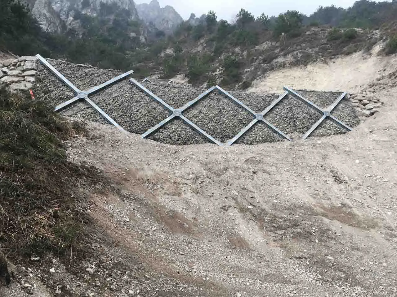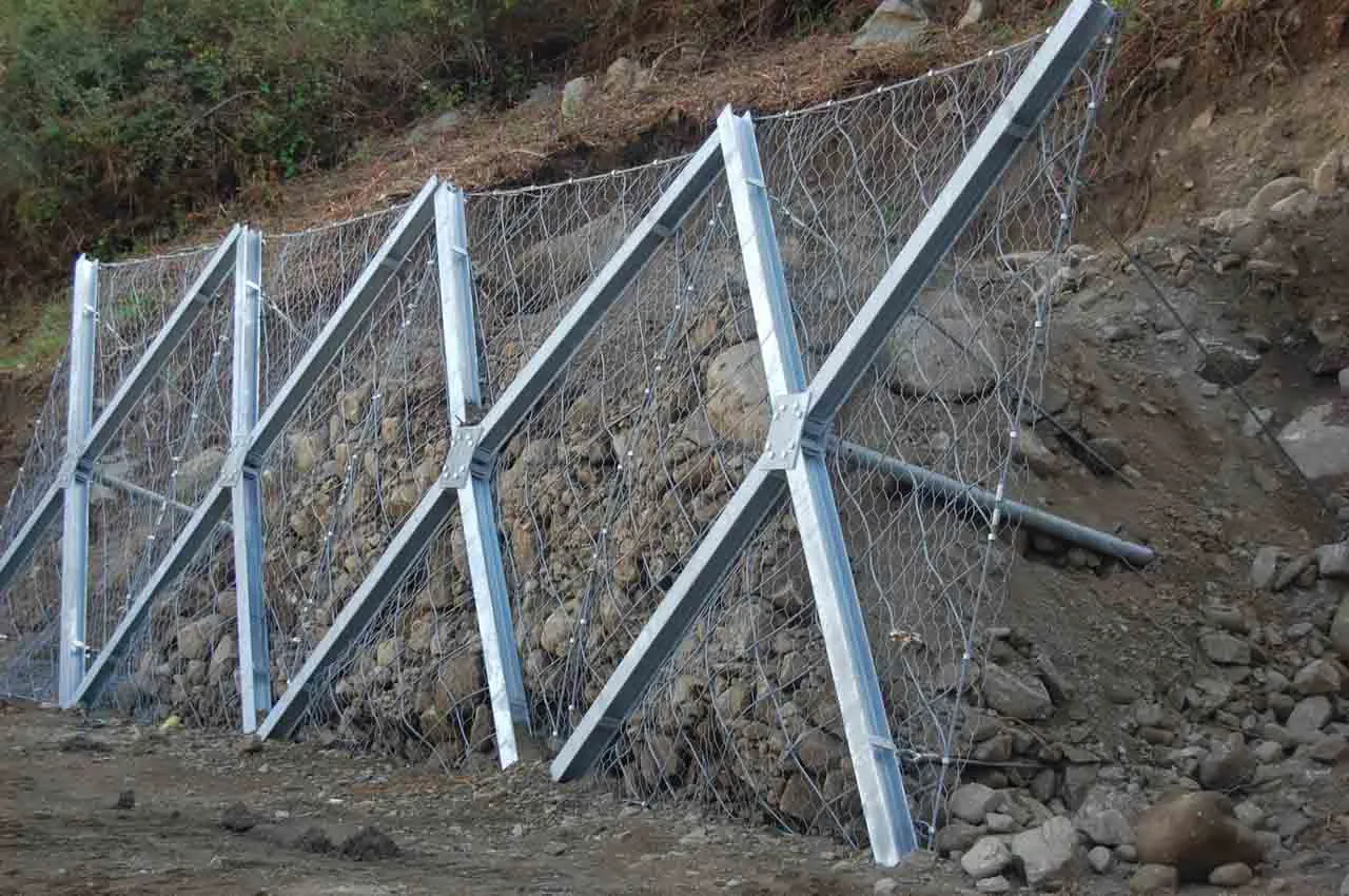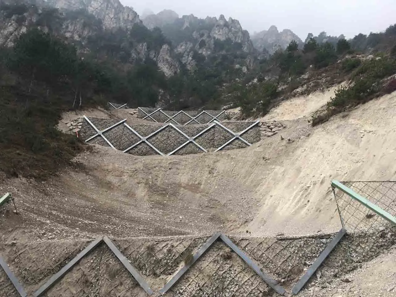 Le strutture Erdox Terra (dim. H310x360 cm ca. o H360x310 cm ca.) rappresentano la soluzione più rapida e sicura per la realizzazione di opere di consolidamento “attivo” di canaloni soggettia a fenomeni di debris-flow.
