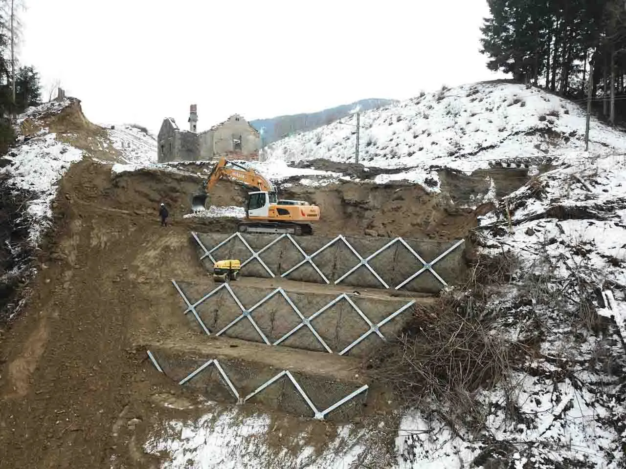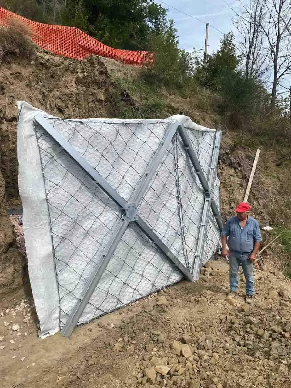 Le strutture Erdox Terra (dim. H310x360 cm ca. o H360x310 cm ca.) rappresentano la soluzione più rapida e sicura per la realizzazione di interventi in “somma urgenza” per per il consolidamento di sottoscarpa stradali interessati da fenomeni gravitativi superficiali che interessano la viabilità.